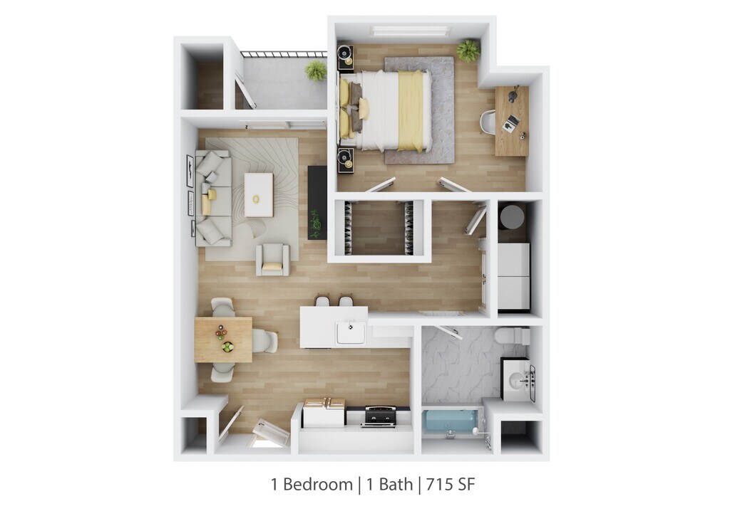 1 Dormitorio, 1 Baño, 715 pies²Galería del Modelo
