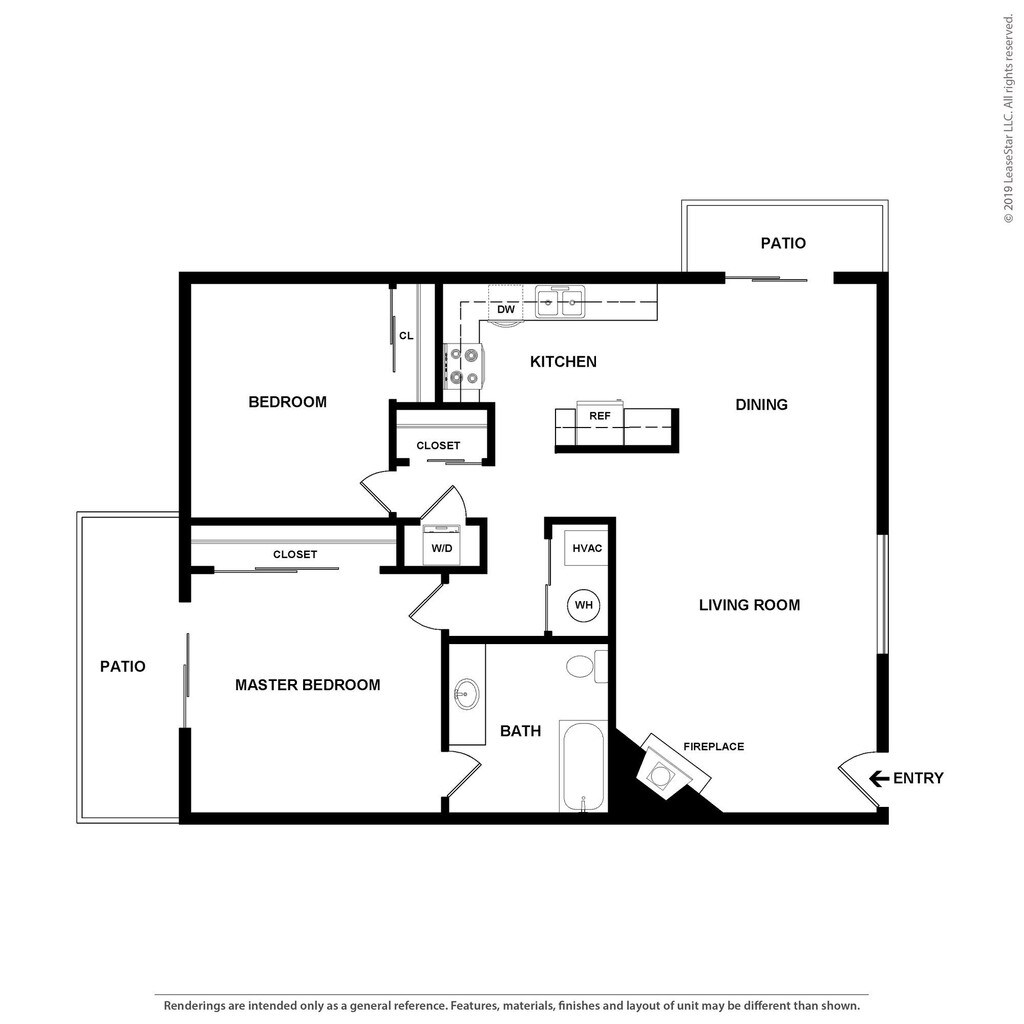 Modelo de apartamento: 2 Bed 1 Bath$1,6552 Dormitorios, 1 Baño, 885 sq ftDisponible Ahora![]()