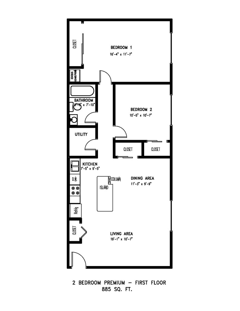 Modelo de apartamento: Premium - 2-Bedroom, 1-Bath with BalconyDesde $1,4452 Dormitorios, 1 Baño, 885 sq ftDisponible AhoraPlanosFotos![]()