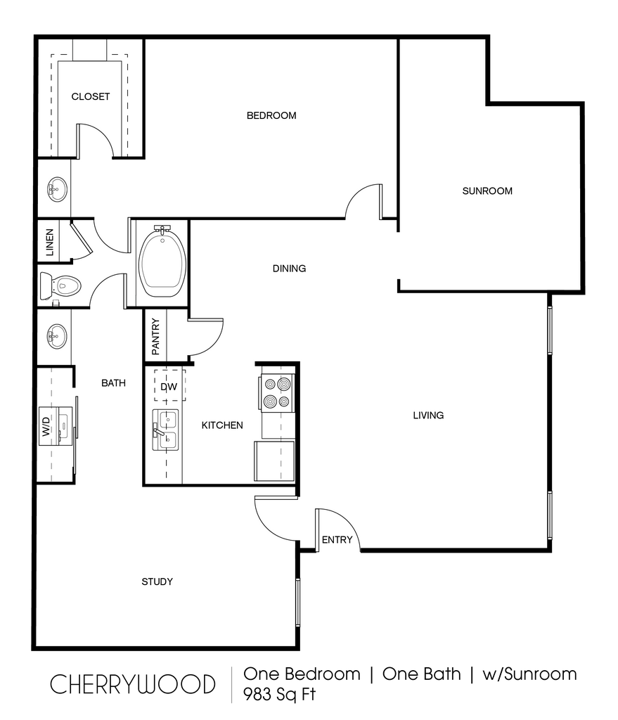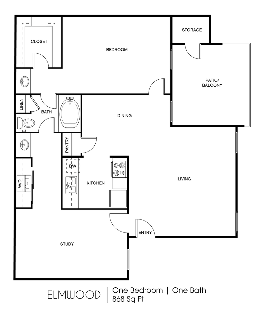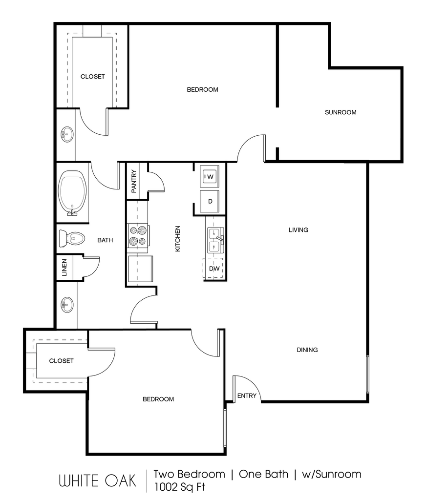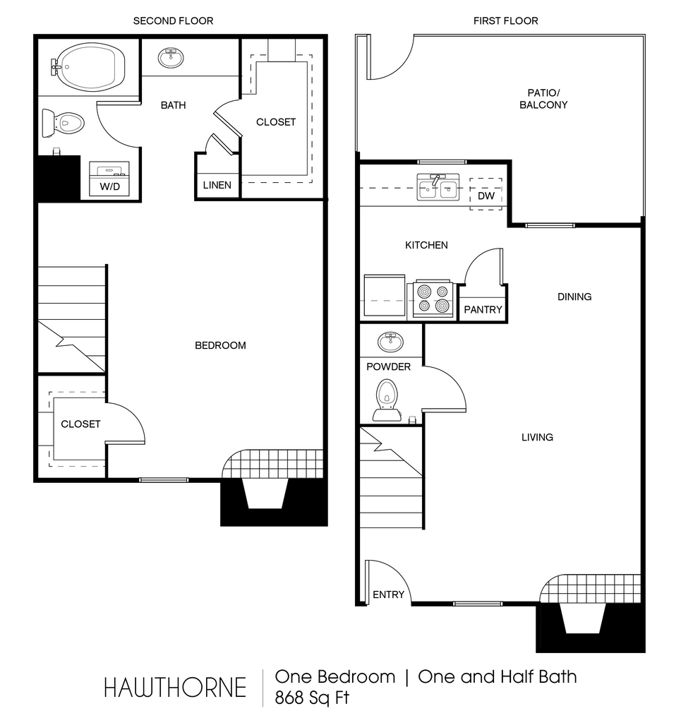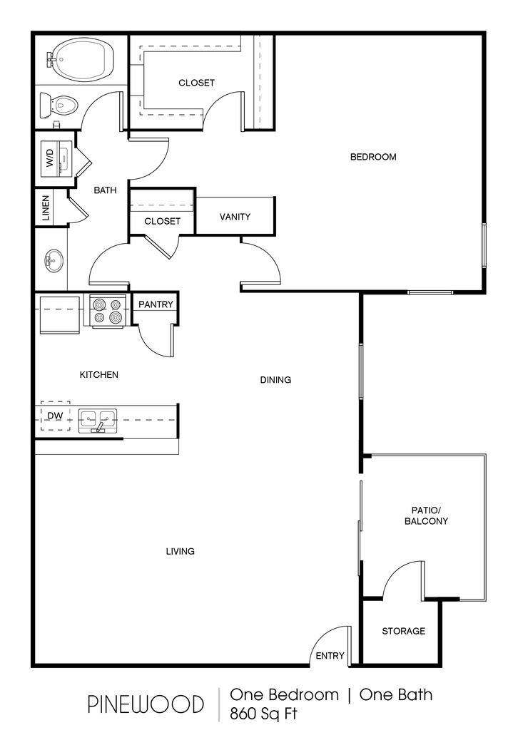 1 Dormitorio, 1 Baño, 860 pies²Disponible AhoraGalería del Modelo