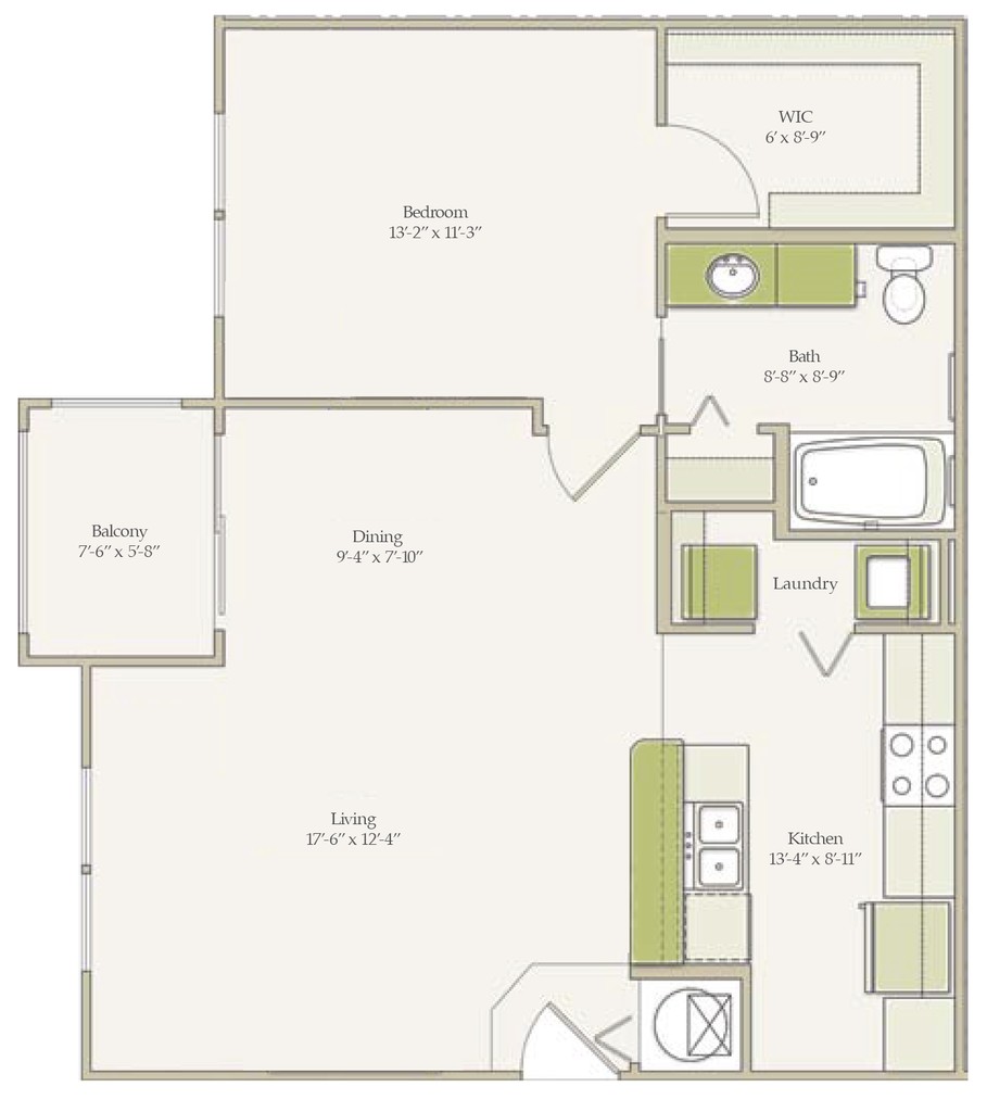 1 Dormitorio, 1 Baño, 806 pies²Disponible AhoraGalería del Modelo