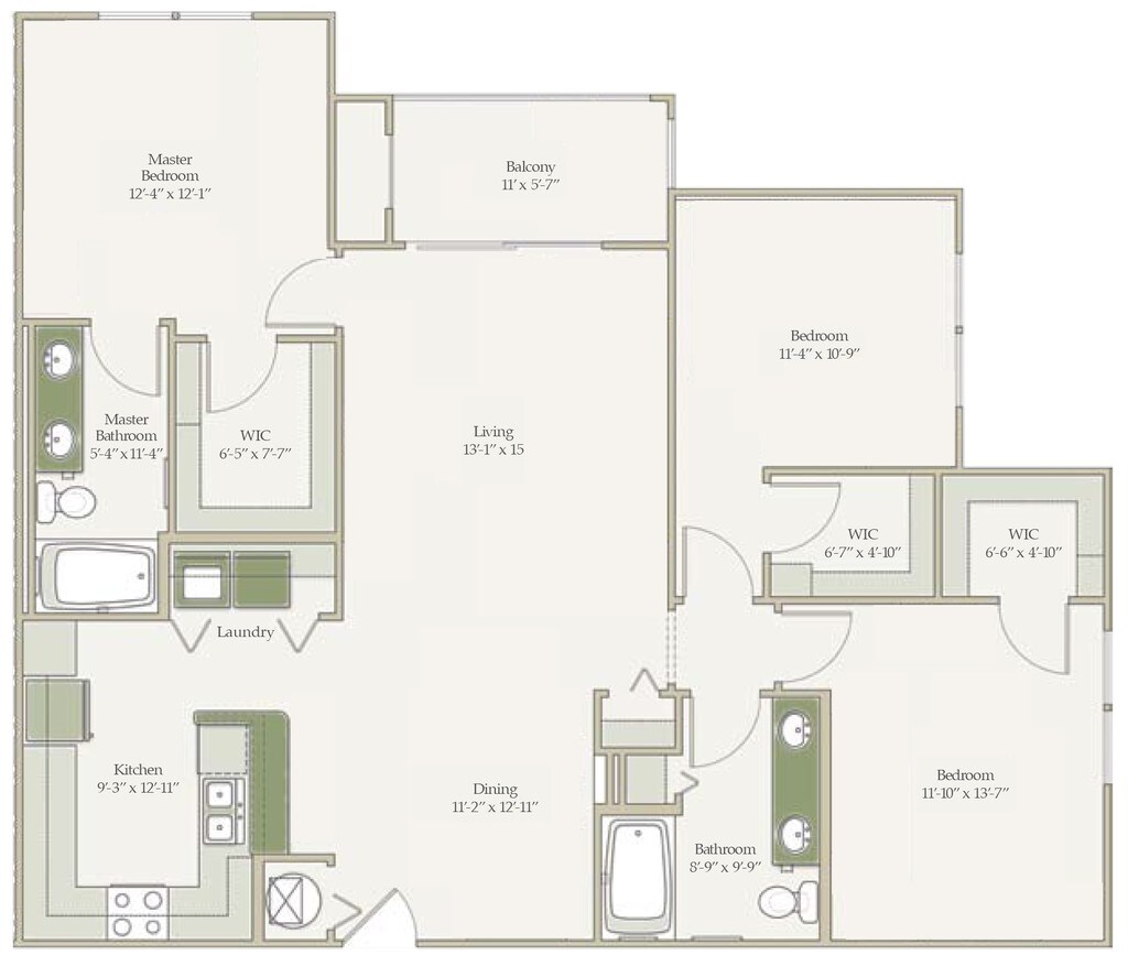 2 Dormitorios, 2 Baños, 1083 pies²Disponible AhoraGalería del Modelo