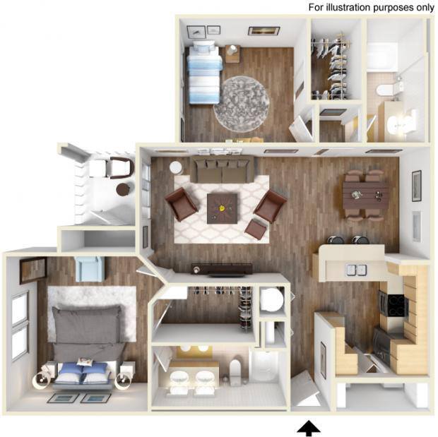 Modelo de apartamento: The Live OakDesde $1,3762 Dormitorios, 2 Baños, 1083 sq ftDisponible Ahora![]()