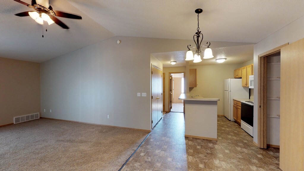 Ubicado en un sector residencial al sudeste de Sioux Falls, este complejo de apartamentos tiene todo: excelente ambiente de vecindario, cercanía a senderos para bicicletas, parques, hospitales, por no mencionar el fácil acceso al centro de la ciudad. Descubre las diversas maneras de hacer de Oakmont Estates tu hogar. Plano de planta abierto, cocina completamente equipada, lavadora/secadora, garajes adjuntos (por un corredor). No hay necesidad de salir al exterior para tener acceso a tu garaje.