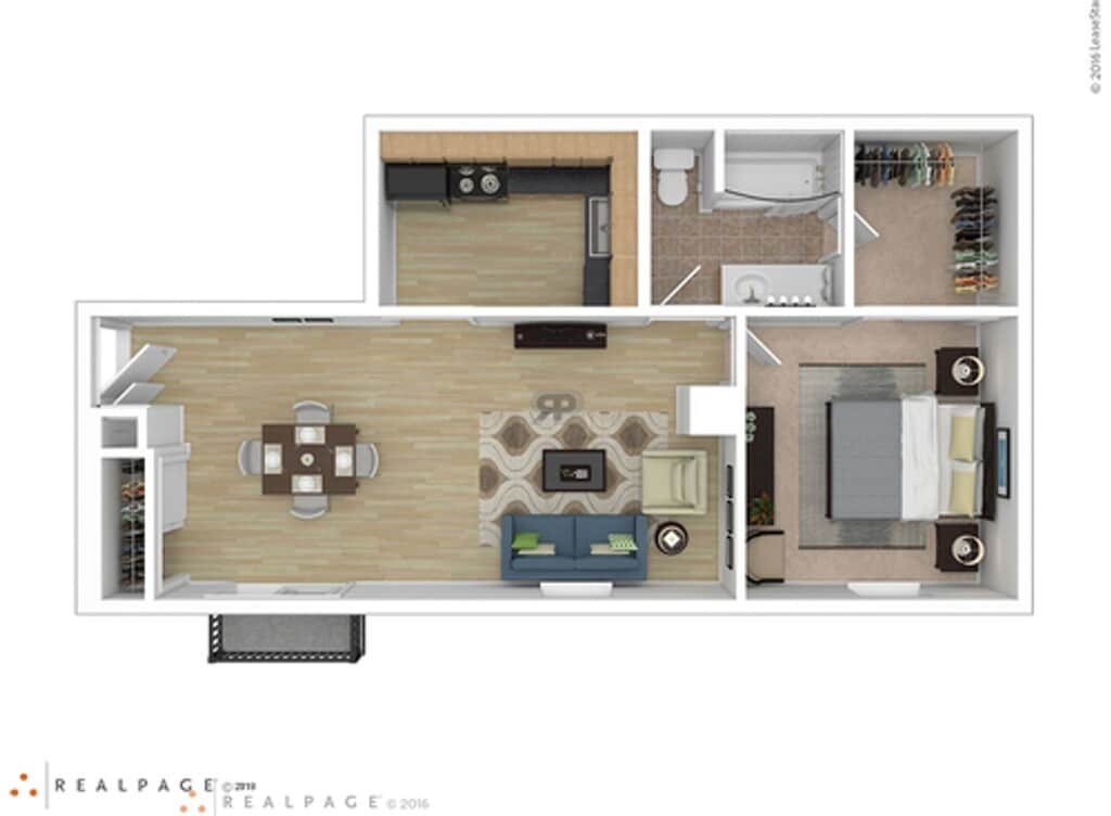 Modelo de apartamento: 1x1A$1,0501 Dormitorio, 1 Baño, 700 sq ftDisponible Ahora![]()