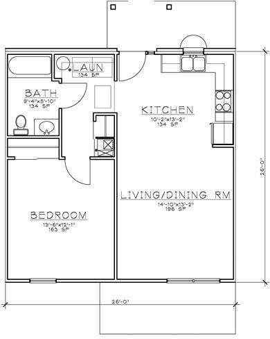 1 Dormitorio, 1 Baño, 734 pies²Galería del Modelo