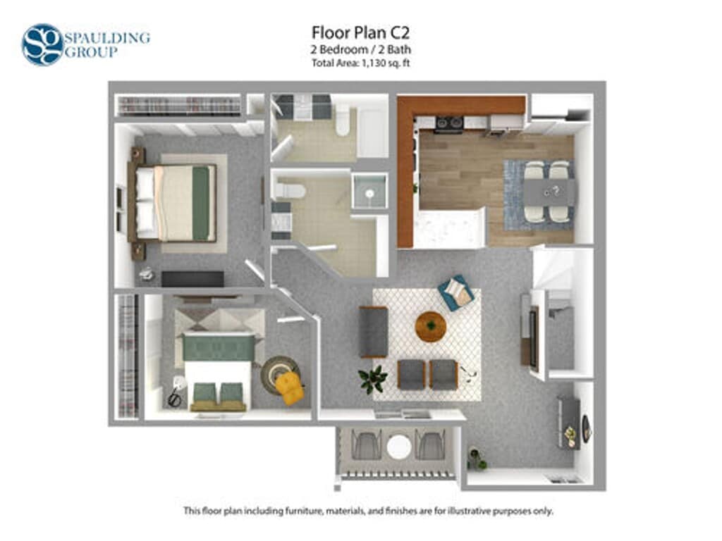 2 Dormitorios, 2 Baños, 1130 pies²Disponible AhoraGalería del Modelo