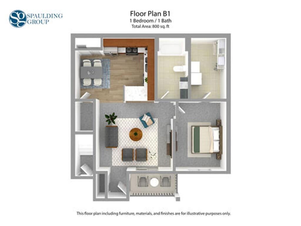 Modelo de apartamento: B1OR - B1-OR$1,0851 Dormitorio, 1 Baño, 800 sq ftDisponible December 12, 2025PlanosFotos![]()