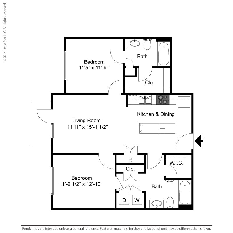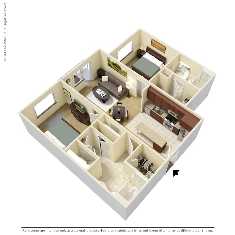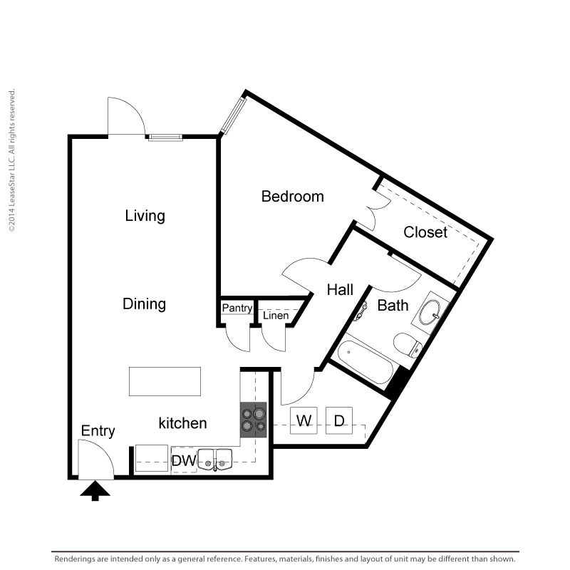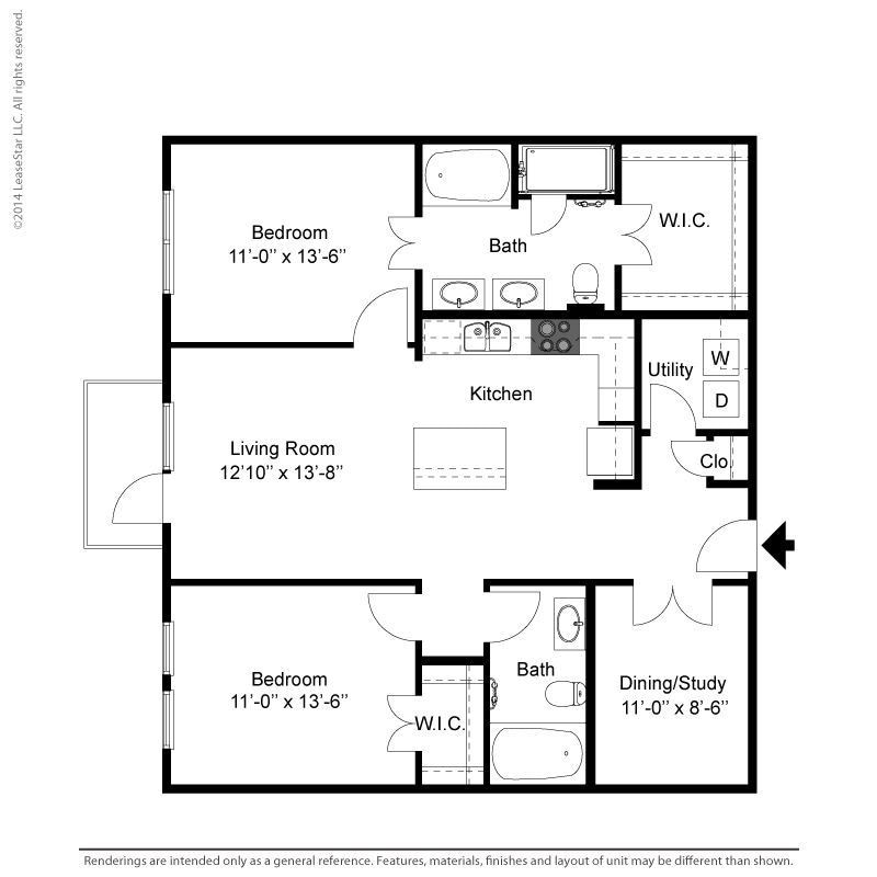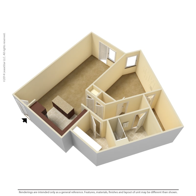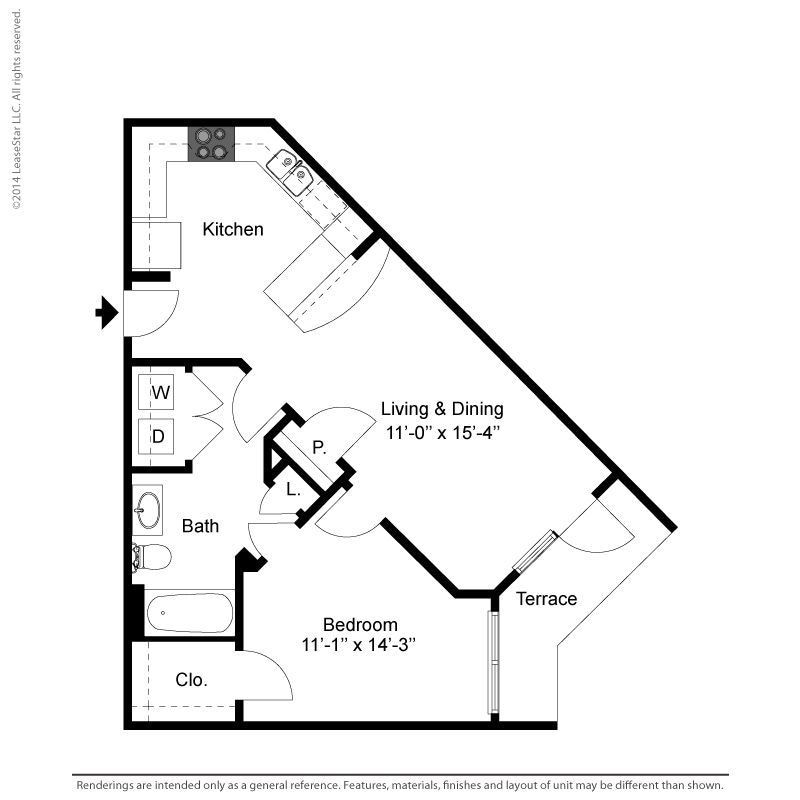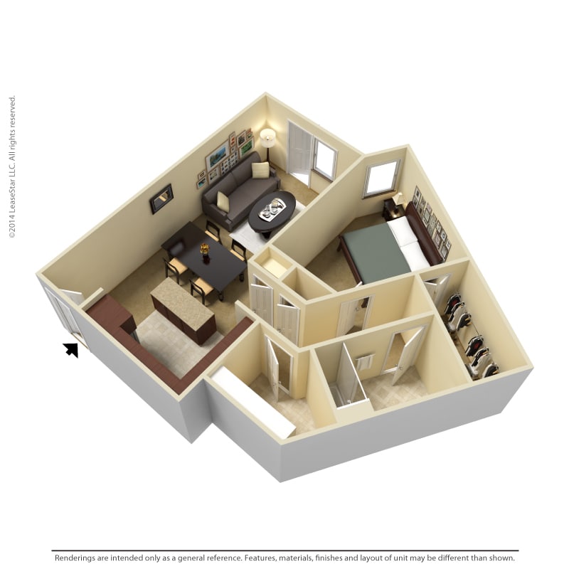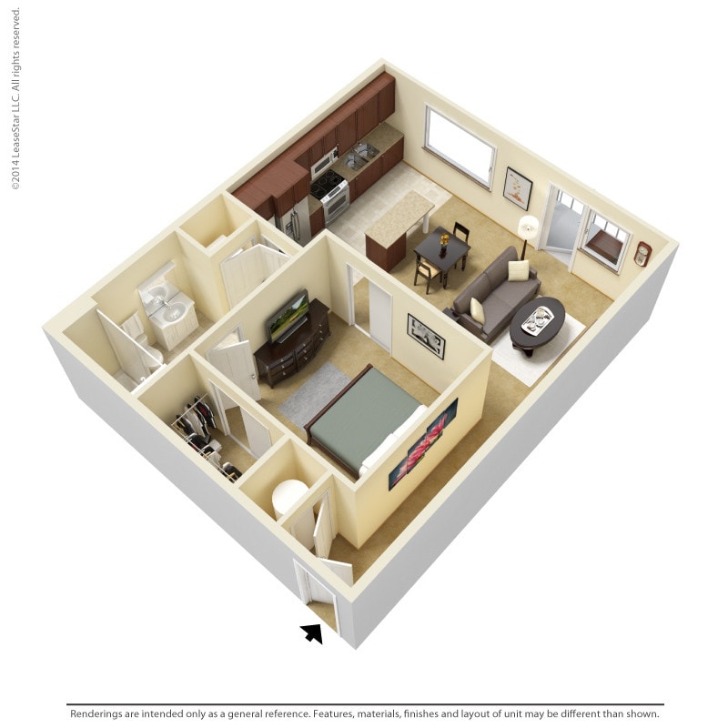 1 Dormitorio, 1 Baño, 700-735 pies²Disponible AhoraGalería del Modelo