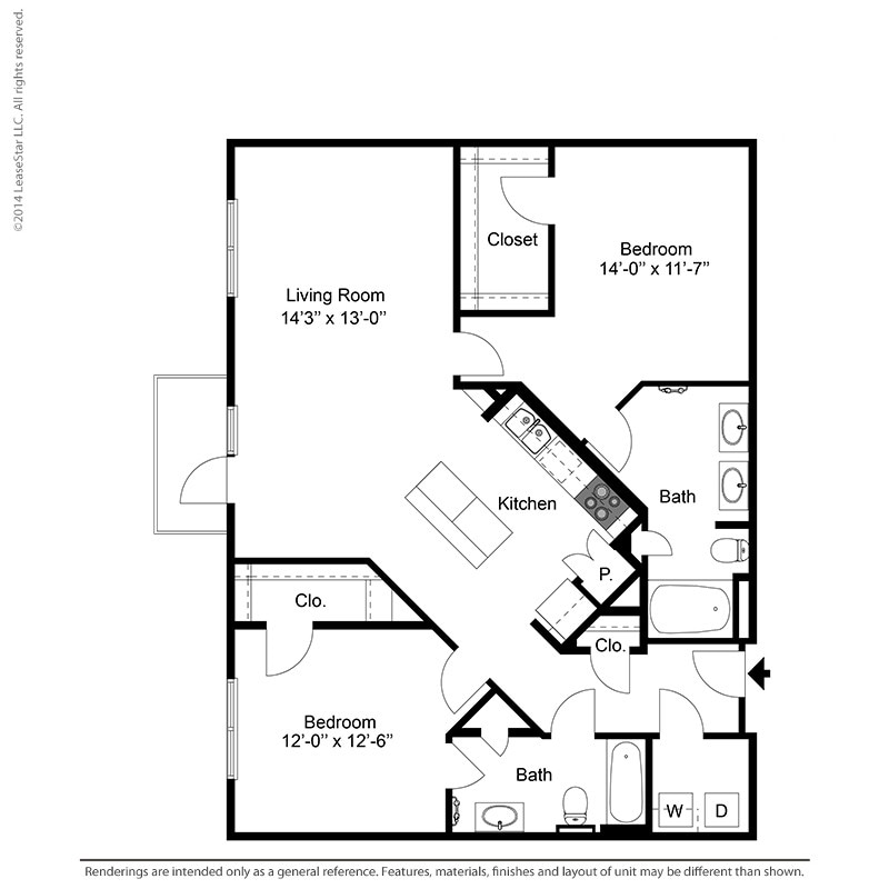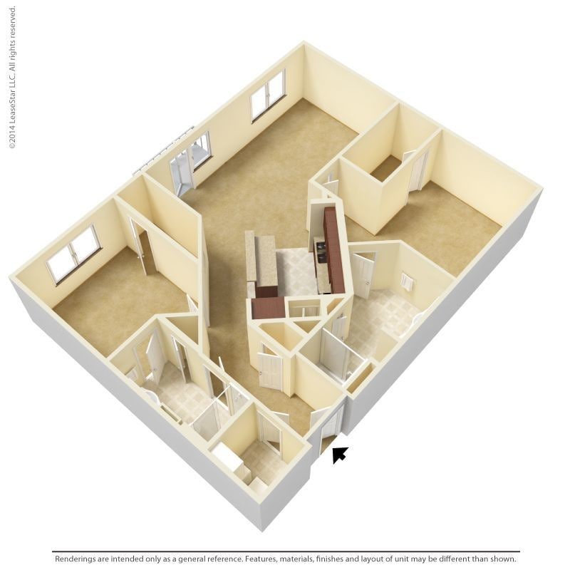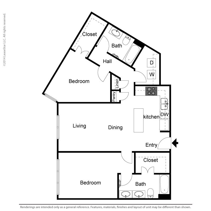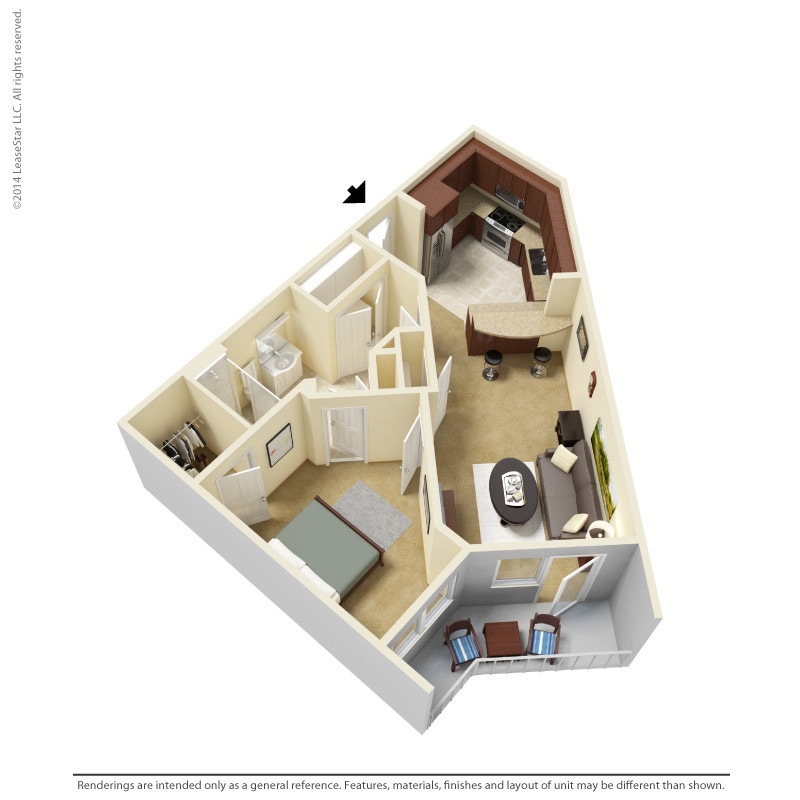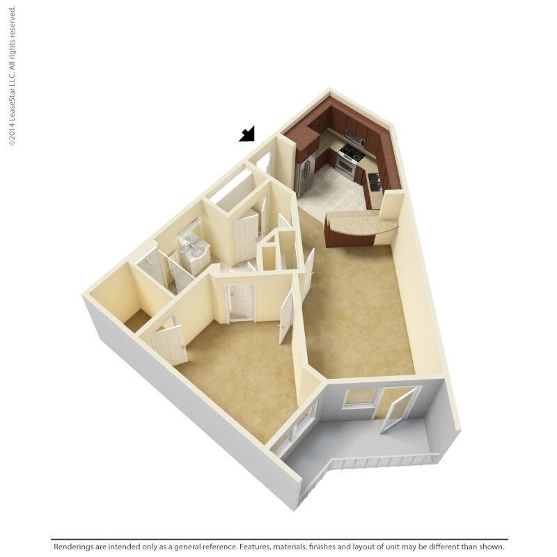 Modelo de apartamento: 1 Bedroom - A1Desde $1,1881 Dormitorio, 1 Baño, 700-735 sq ftDisponible Ahora![]()