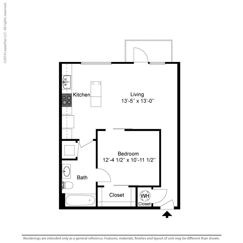 1 Bedroom - E1 - Plano 1 ![]()