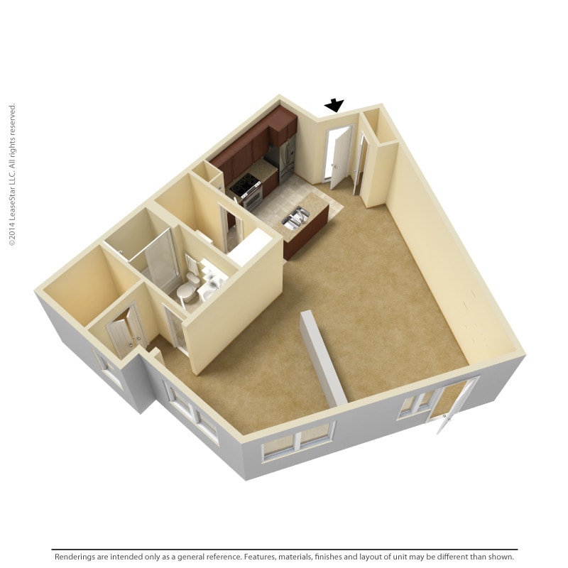 Modelo de apartamento: 1 Bedroom - E1Desde $1,2431 Dormitorio, 1 Baño, 583 sq ftDisponible January 1, 2026![]()