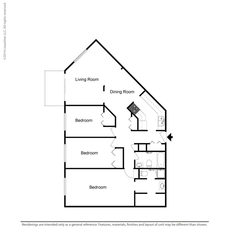 Modelo de apartamento: Studio - E1$1,043Estudio, 1 Baño, 425 sq ftNo Disponible![]()