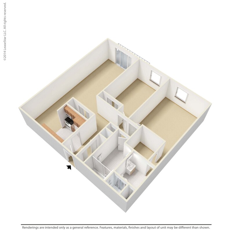 2 Dormitorios, 2 Baños, 1150 pies²Galería del Modelo