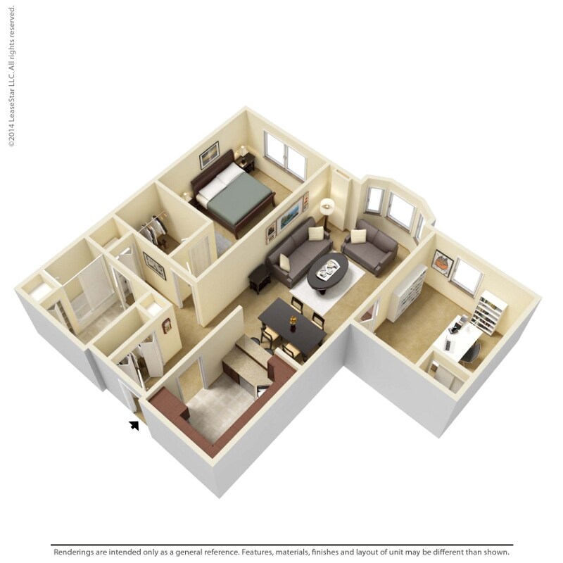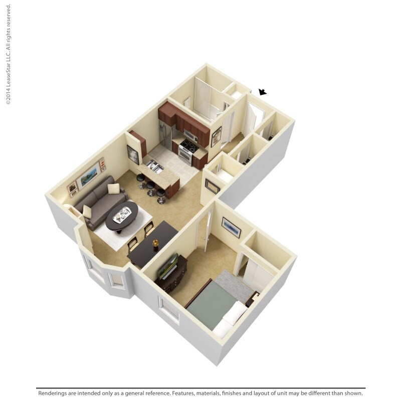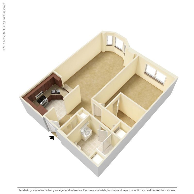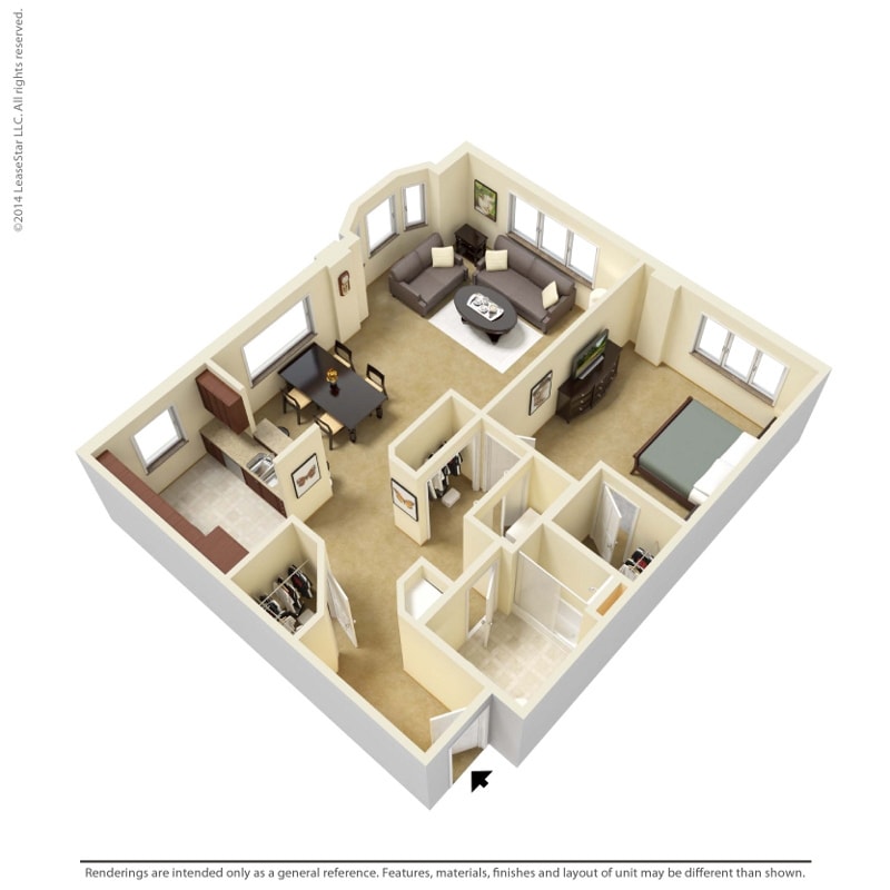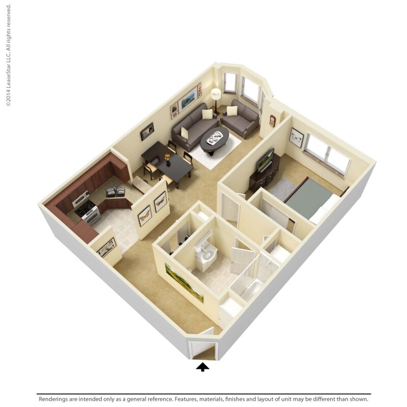 Modelo de apartamento: 1 Bedroom - A4Desde $1,4011 Dormitorio, 1 Baño, 729 sq ftNo Disponible![]()