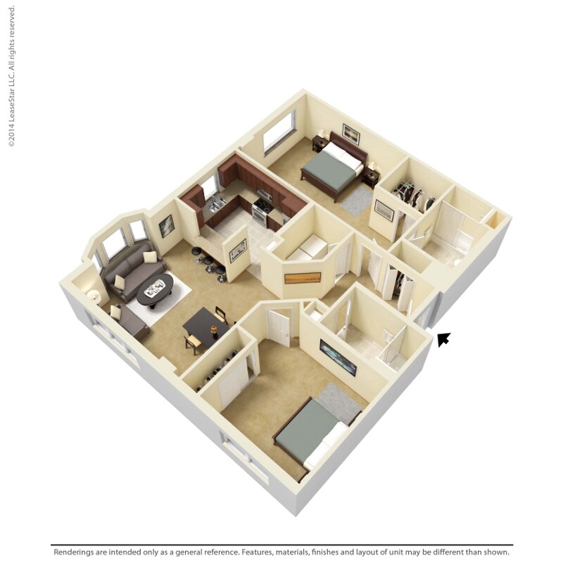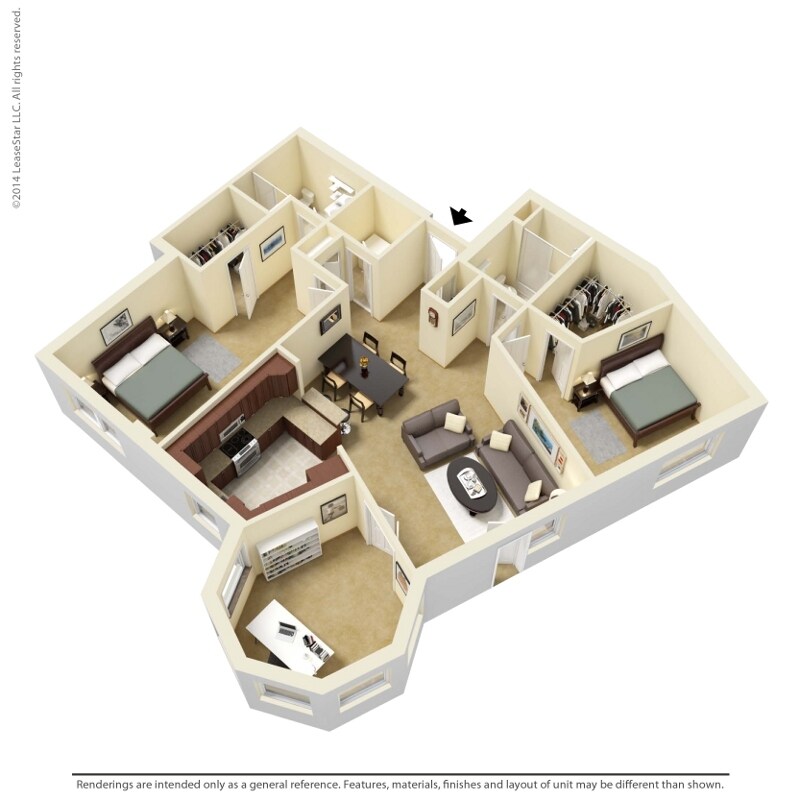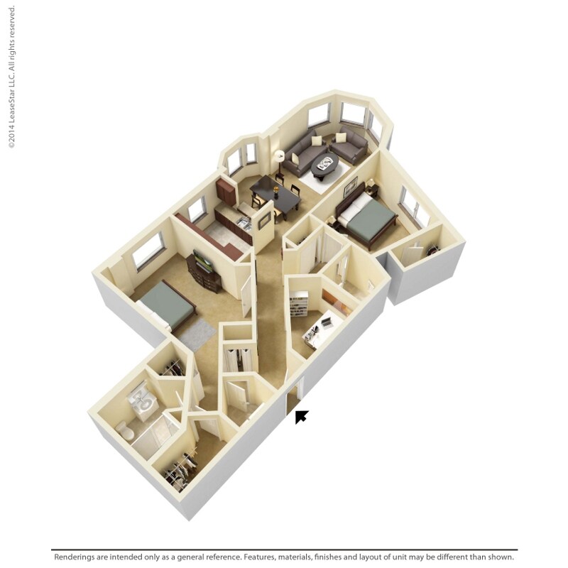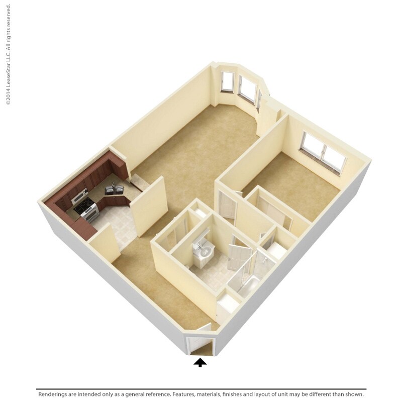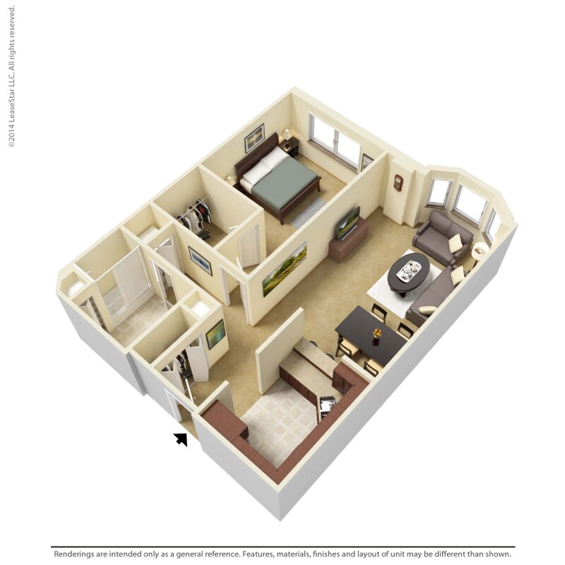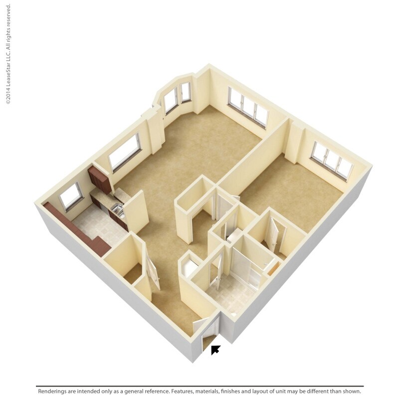 Modelo de apartamento: 1 Bedroom - A4Desde $1,4011 Dormitorio, 1 Baño, 729 sq ftNo Disponible![]()