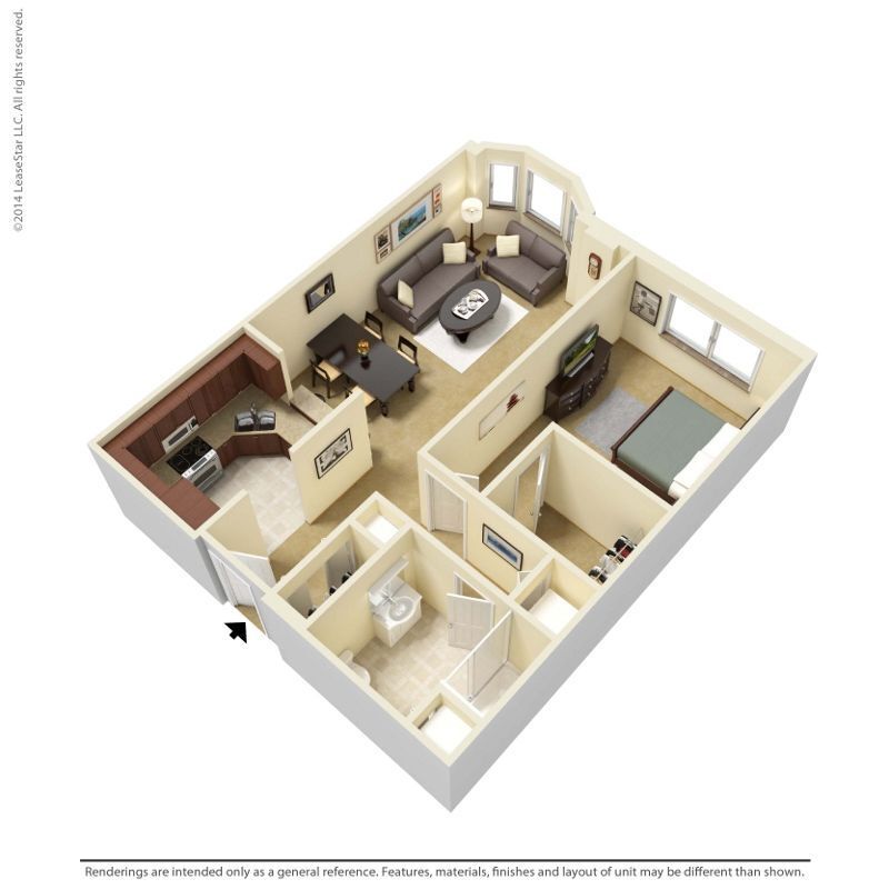Modelo de apartamento: 1 Bedroom - A1Desde $1,1871 Dormitorio, 1 Baño, 632 sq ftNo DisponiblePlanosFotos![]()
