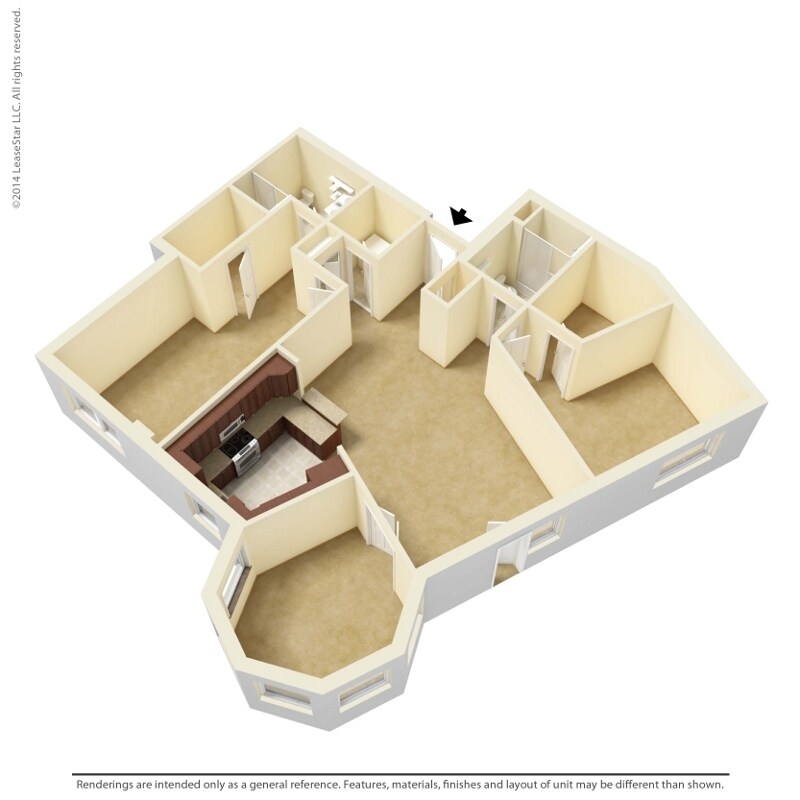 Modelo de apartamento: 1 Bedroom - A3Desde $1,3401 Dormitorio, 1 Baño, 726 sq ftNo Disponible![]()