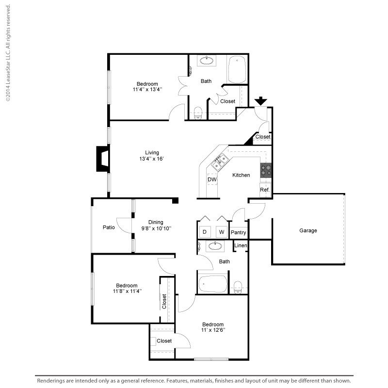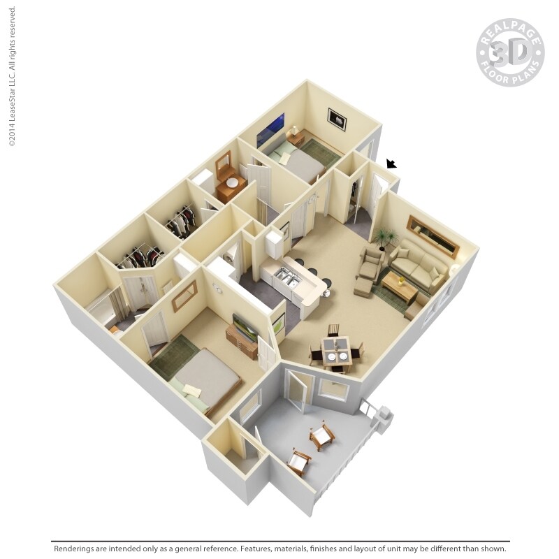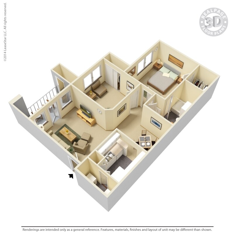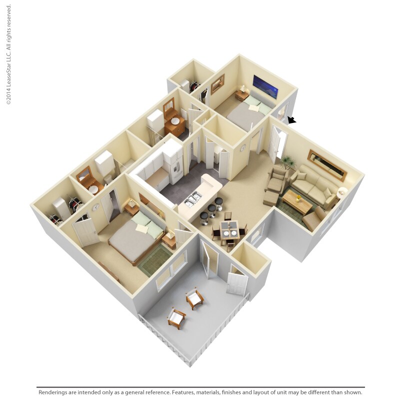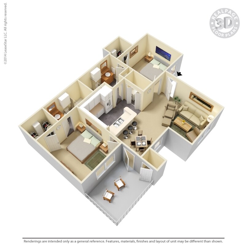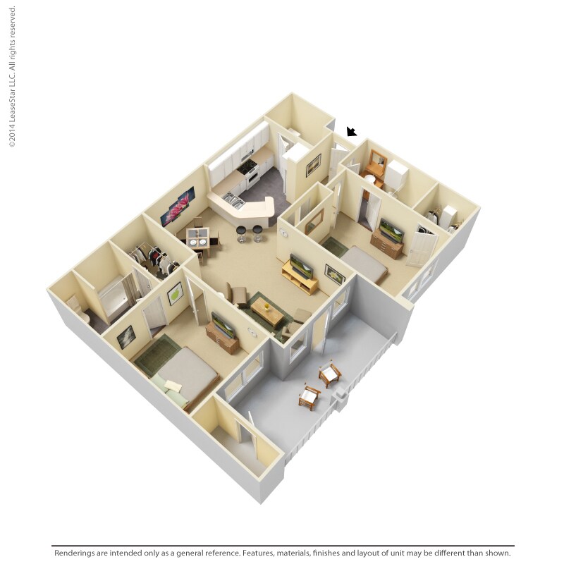 Modelo de apartamento: 1 Bedroom - A3Desde $1,1641 Dormitorio, 1 Baño, 726 sq ftDisponible Ahora![]()