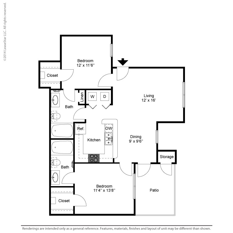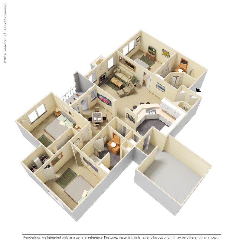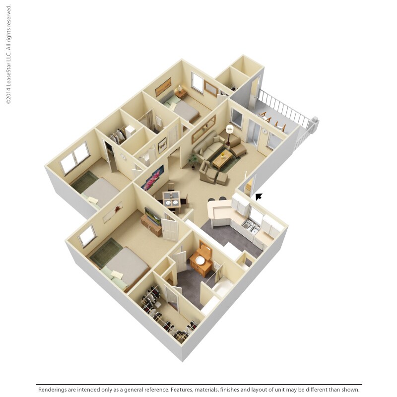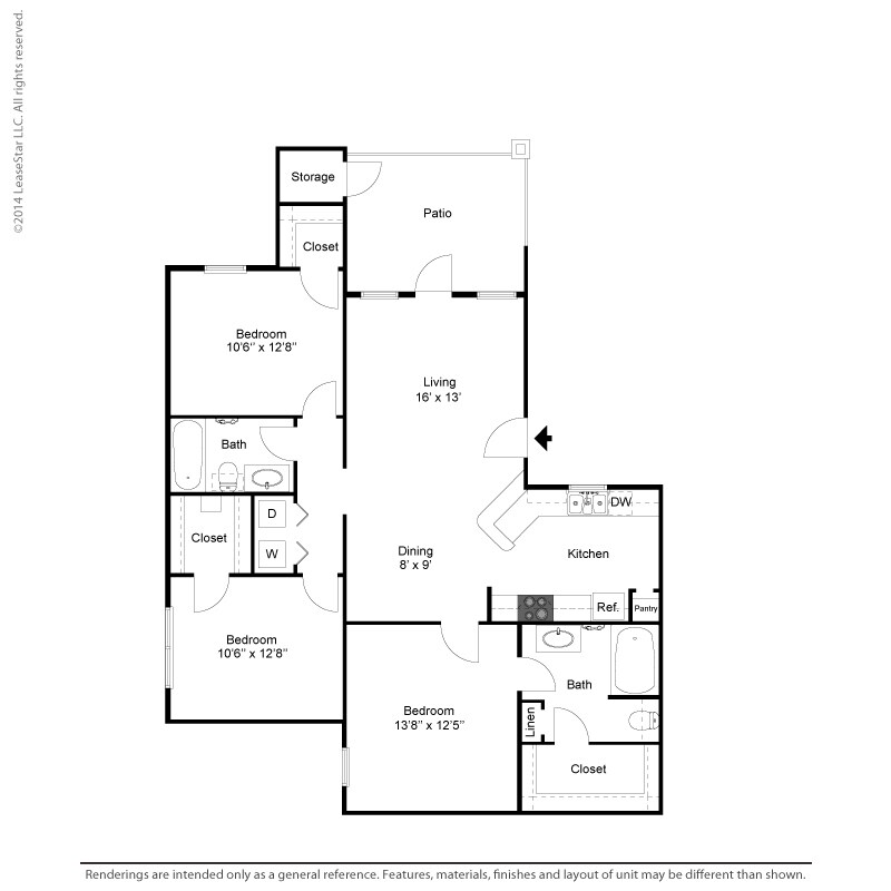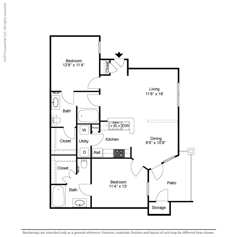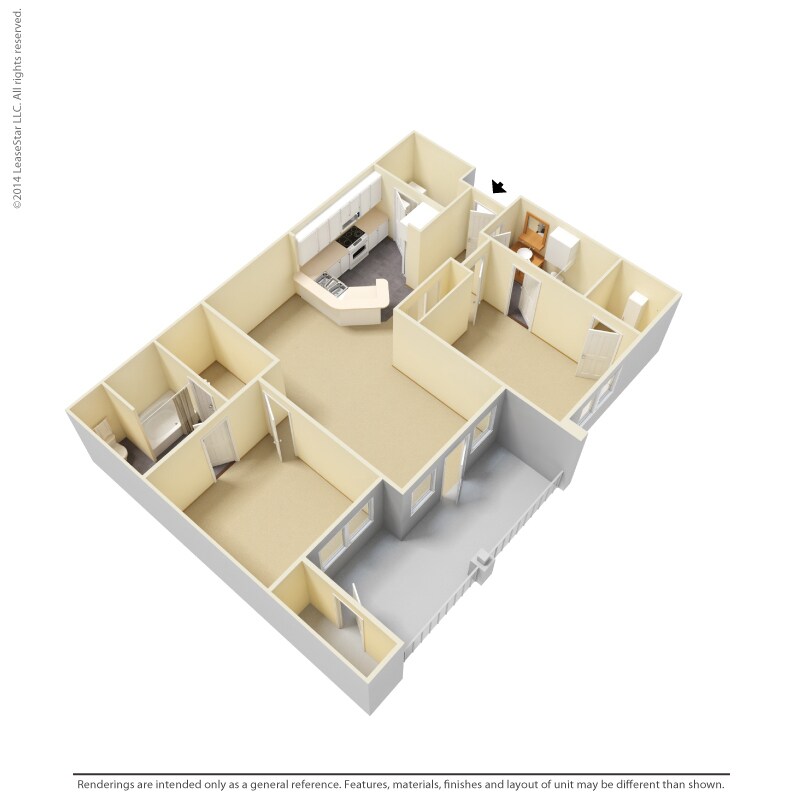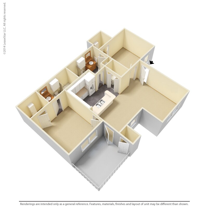 Modelo de apartamento: 1 Bedroom - A3Desde $1,1641 Dormitorio, 1 Baño, 726 sq ftDisponible Ahora![]()