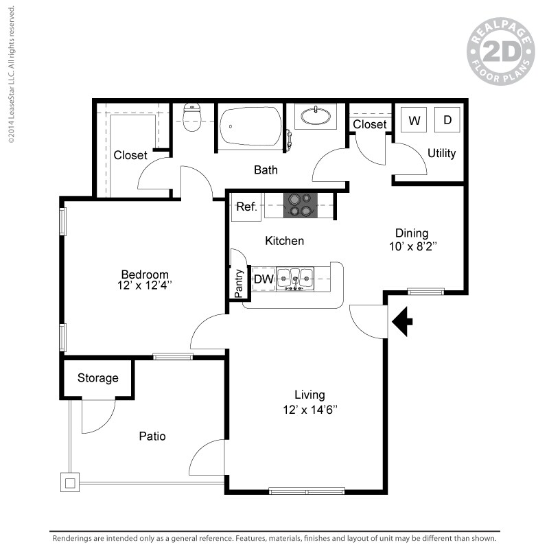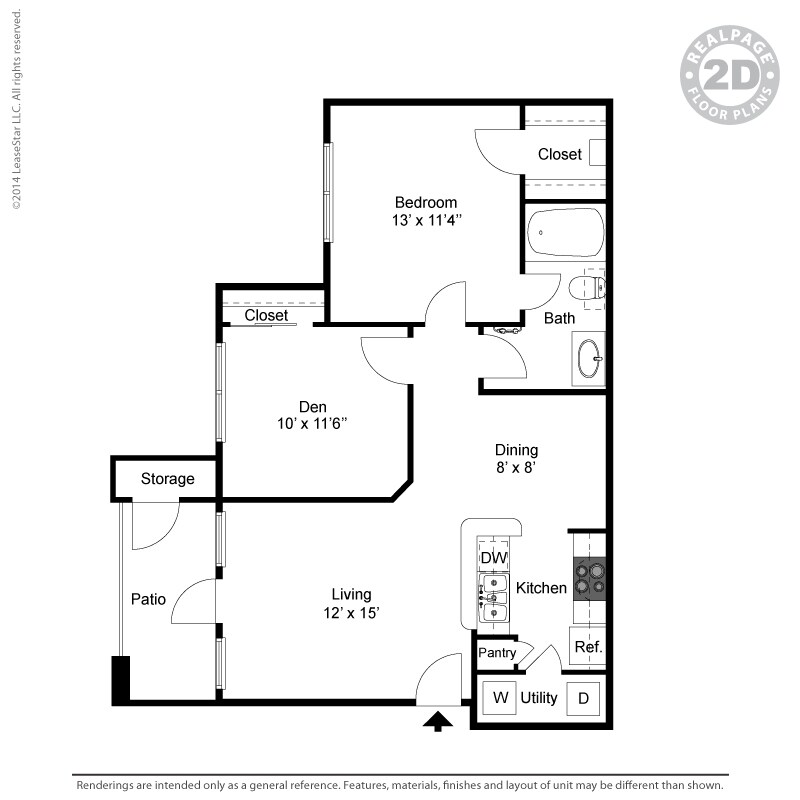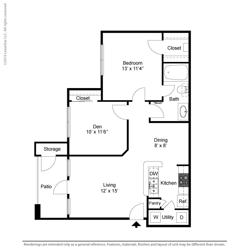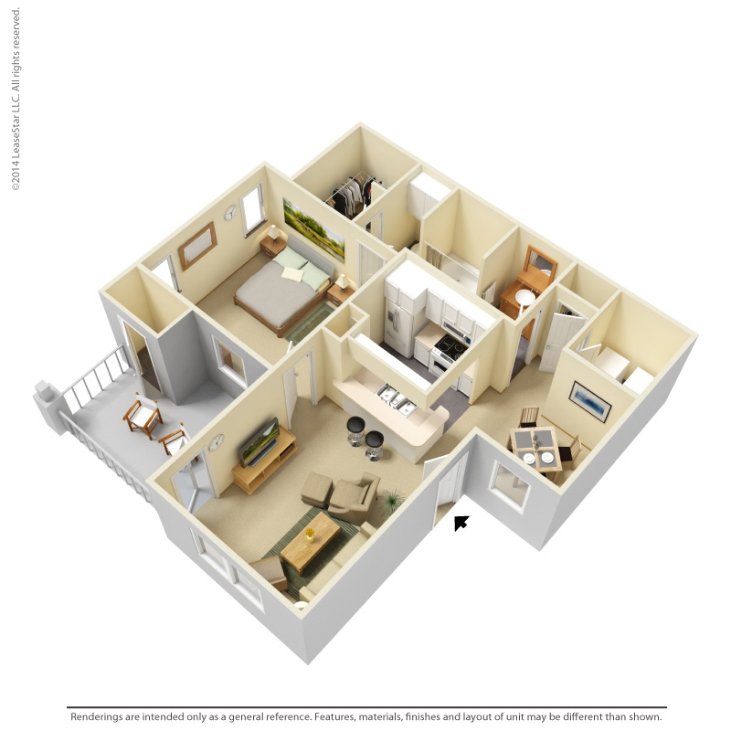 1 Dormitorio, 1 Baño, 726 pies²Disponible AhoraGalería del Modelo