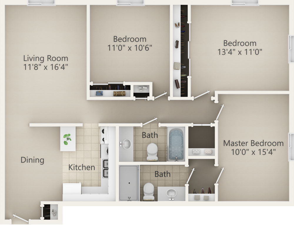 3 Dormitorios, 2 Baños, 1200 pies²Galería del Modelo