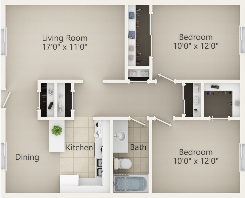 2 Dormitorios, 1 Baño, 825 pies²Galería del Modelo