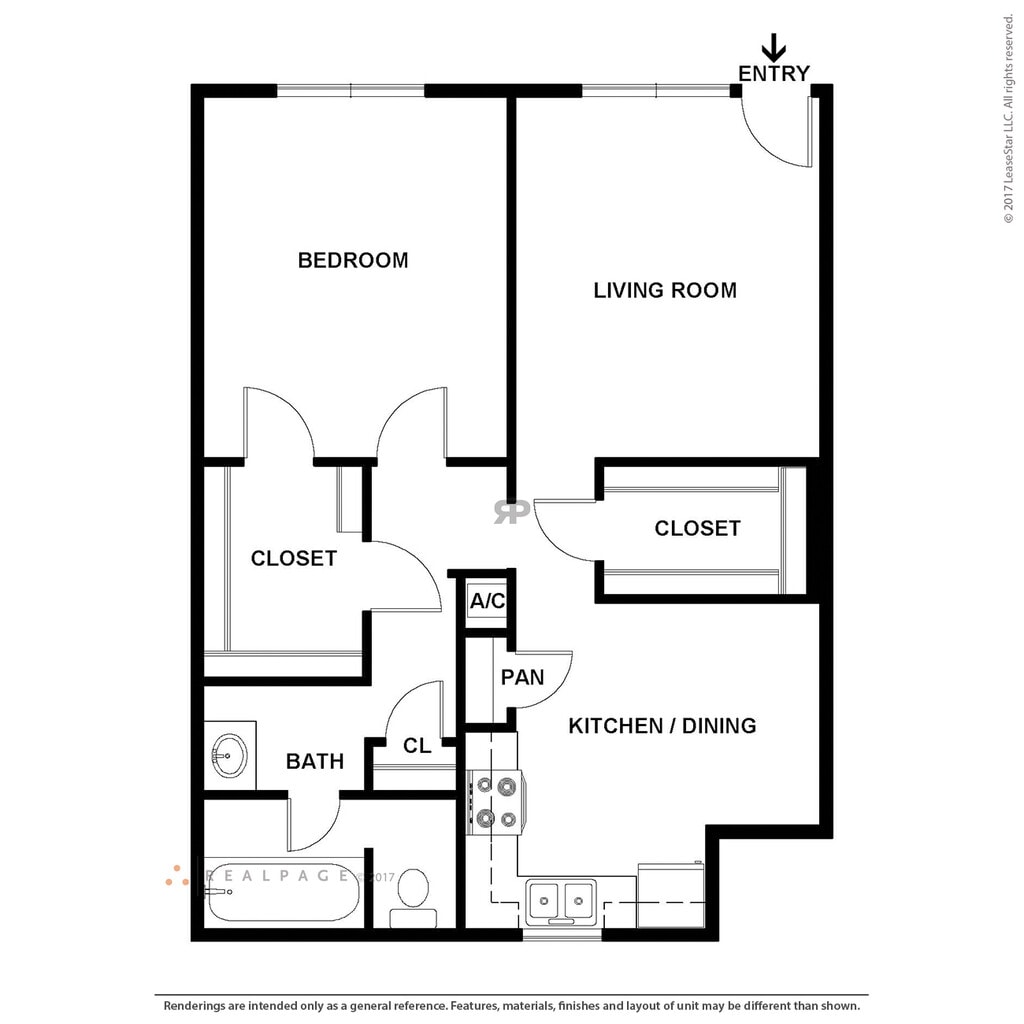 The Bonelli - Plano 1 Los planos son representaciones artísticas. Todas las dimensiones son aproximadas. El producto y las especificaciones reales pueden variar en tamaño o detalle. No todas las características están disponibles en cada vivienda en alquiler. Por favor, consulta con un representante para obtener más detalles.
