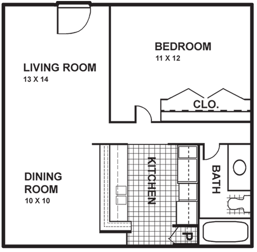 Modelo de apartamento: E2$930Estudio, 1 Baño, 435 sq ftDisponible Ahora![]()
