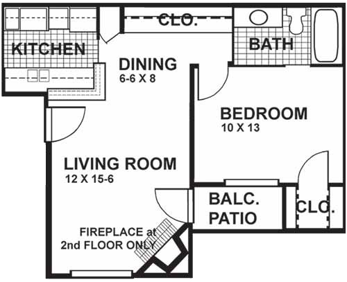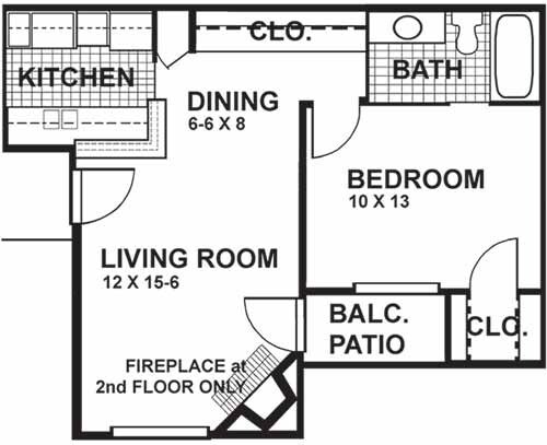 Modelo de apartamento: A2F$1,0551 Dormitorio, 1 Baño, 573 sq ftNo Disponible![]()