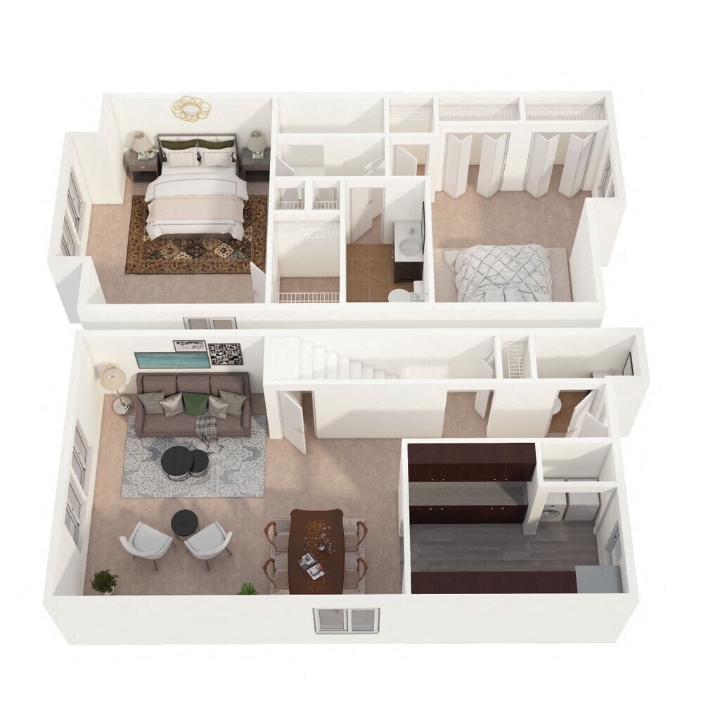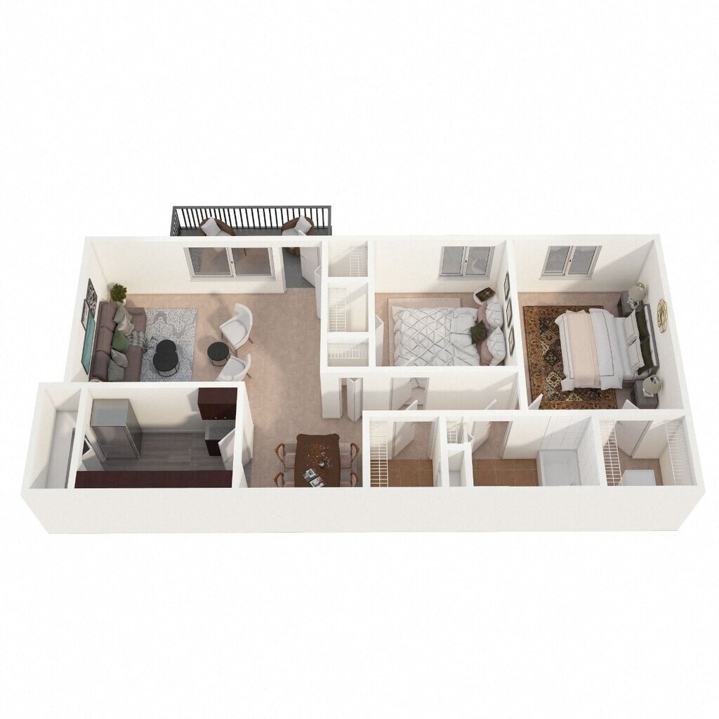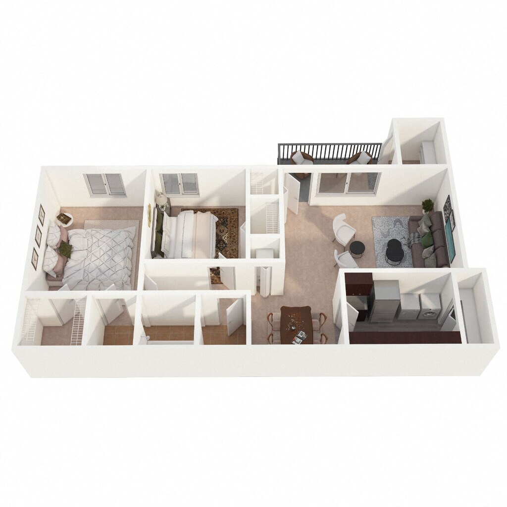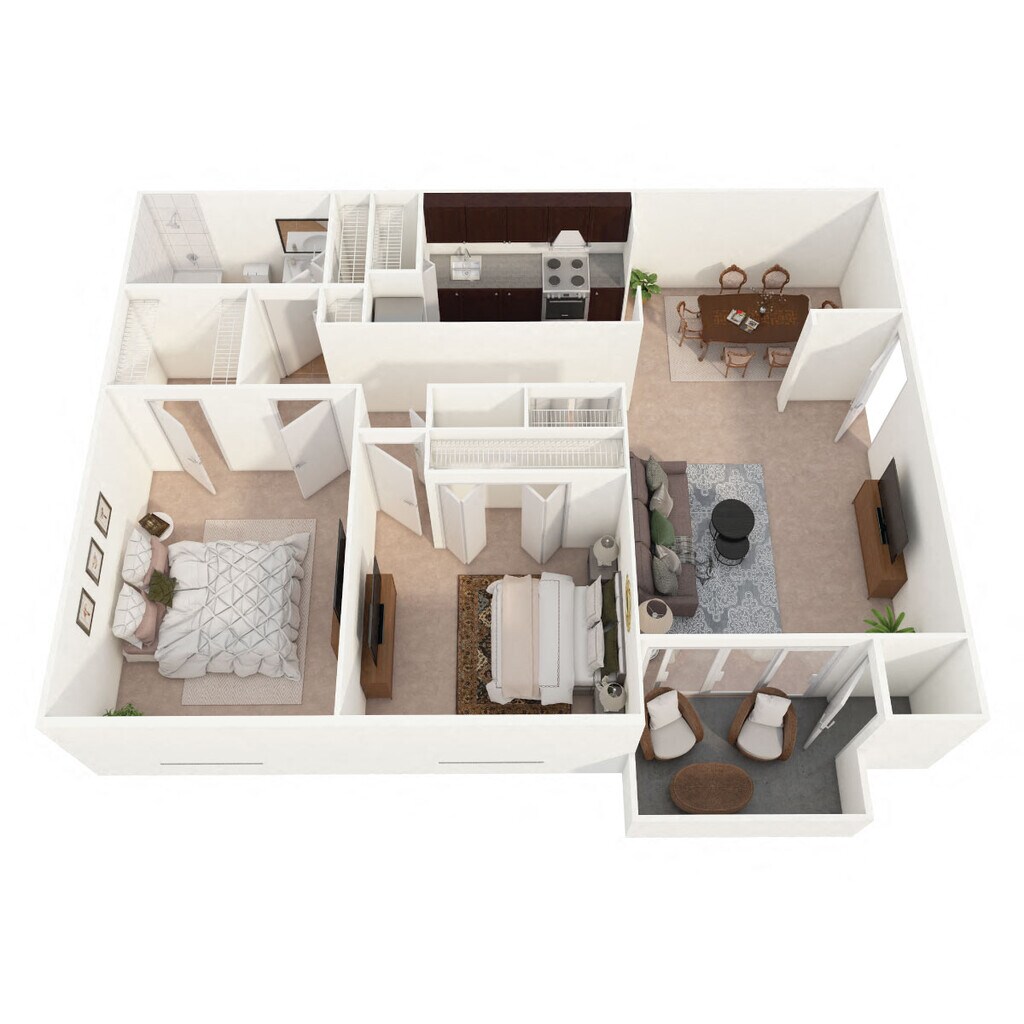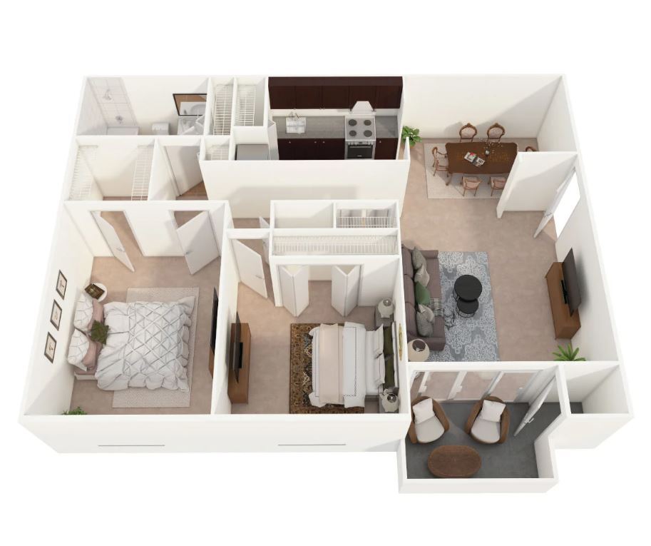2 Dormitorios, 1 Baño, 847 pies²Disponible January 21, 2026Galería del Modelo