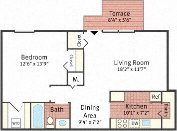Modelo de apartamento: 1 Bedroom GardenDesde $1,4151 Dormitorio, 1 Baño, 686 sq ftDisponible Ahora![]()
