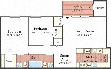 Modelo de apartamento: 1 Bedroom TraditionalDesde $1,2901 Dormitorio, 1 Baño, 607-867 sq ftNo Disponible![]()