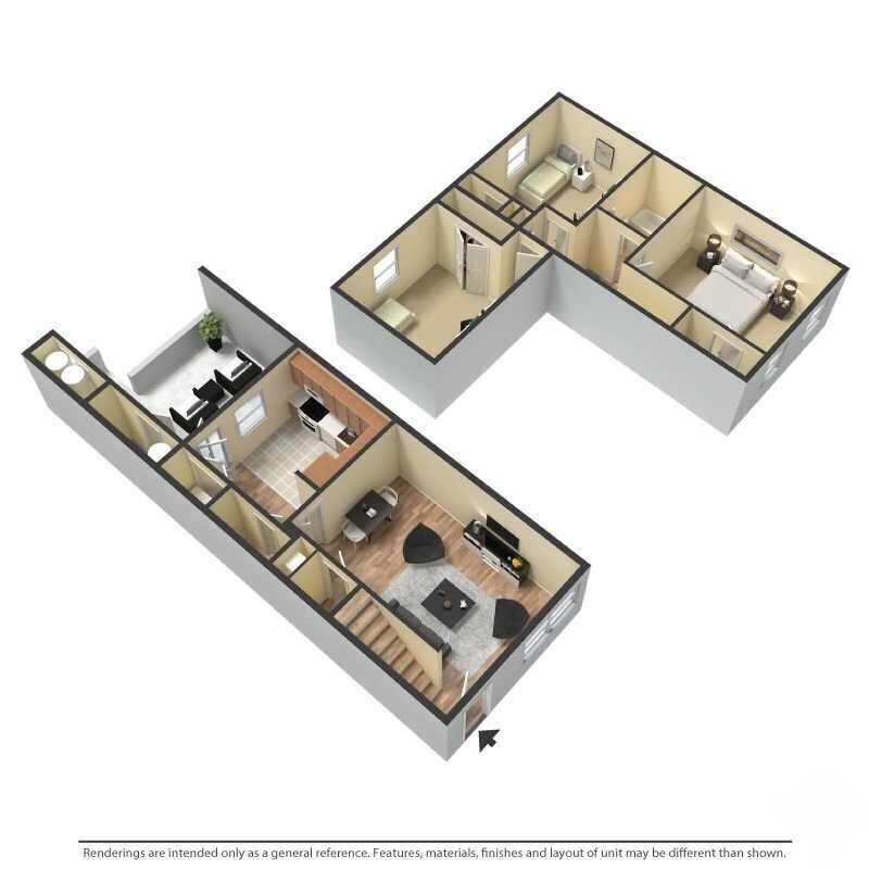 2 Dormitorios, 1.5 Baños, 960 pies²Disponible AhoraGalería del Modelo