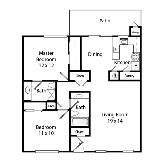 Modelo de apartamento: Royal Oak: A1Desde $1,2251 Dormitorio, 1 Baño, 592 sq ftDisponible Ahora![]()