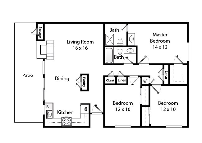 El rango de alquiler de Apartamentos 1 dormitorios a 3 dormitorios en Oakwood Apartments van desde $1,225 a $1,750
