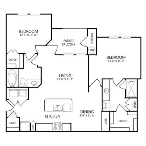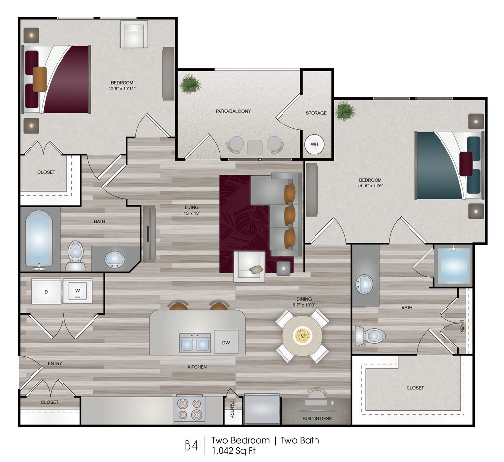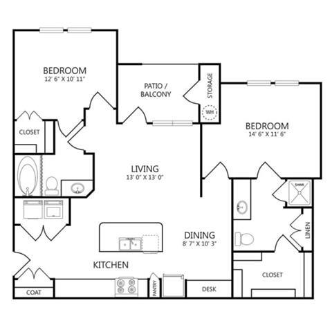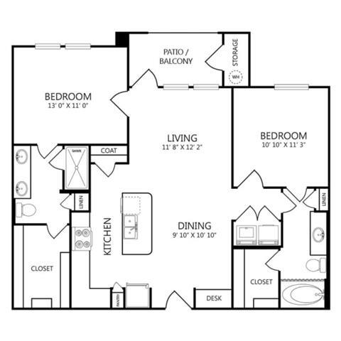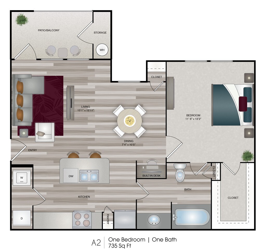 Modelo de apartamento: 1x1 A2Desde $1,3031 Dormitorio, 1 Baño, 735 sq ftDisponible December 8, 2025![]()