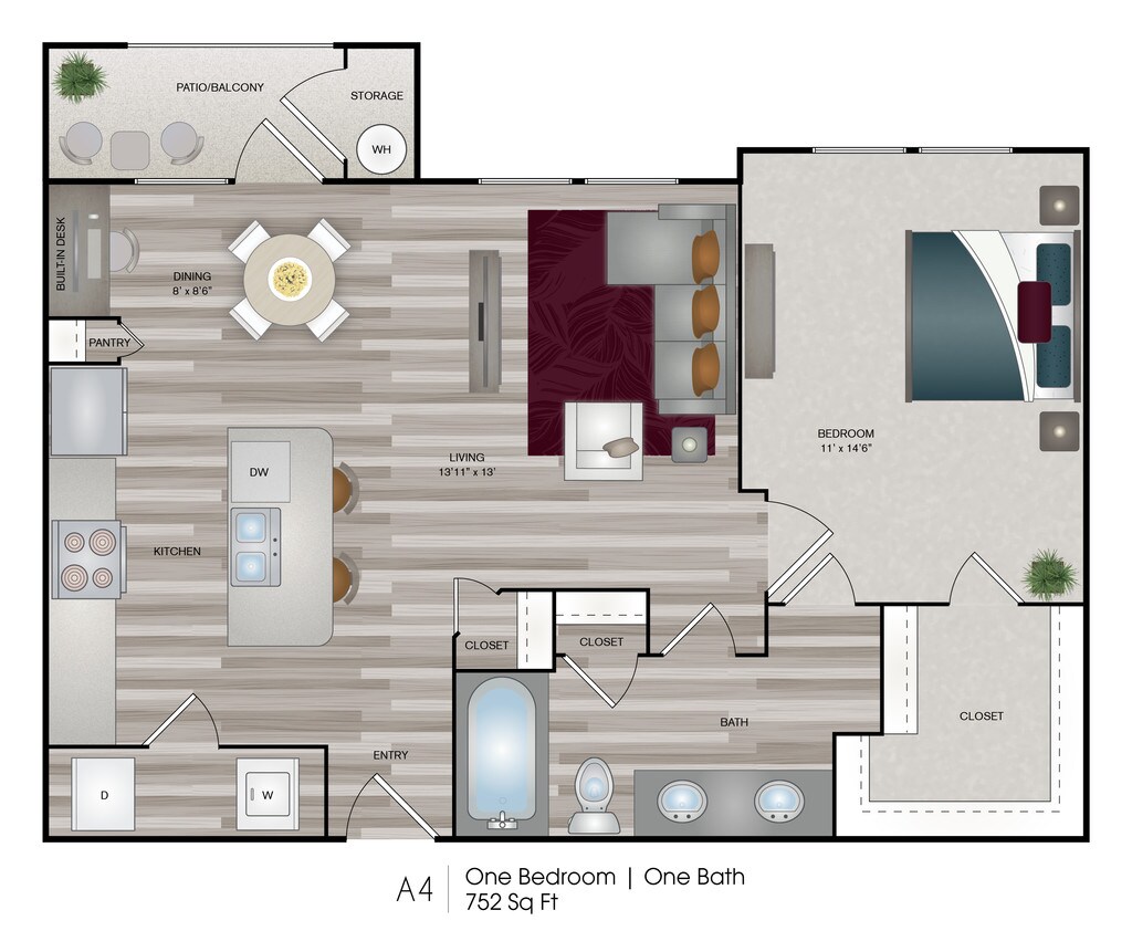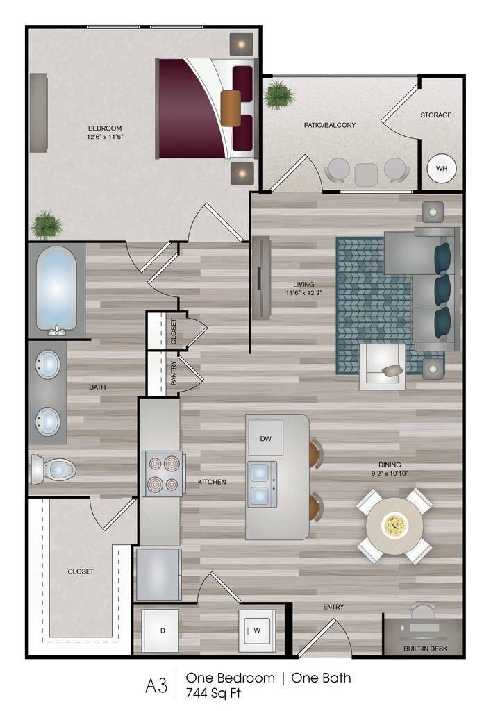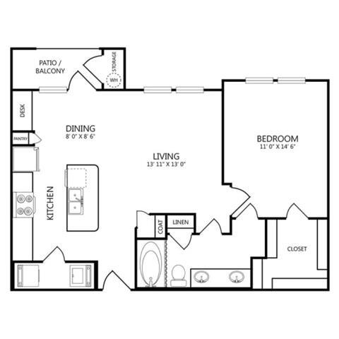 Modelo de apartamento: 1X1 A1Desde $1,2201 Dormitorio, 1 Baño, 660 sq ftDisponible December 1, 2025![]()