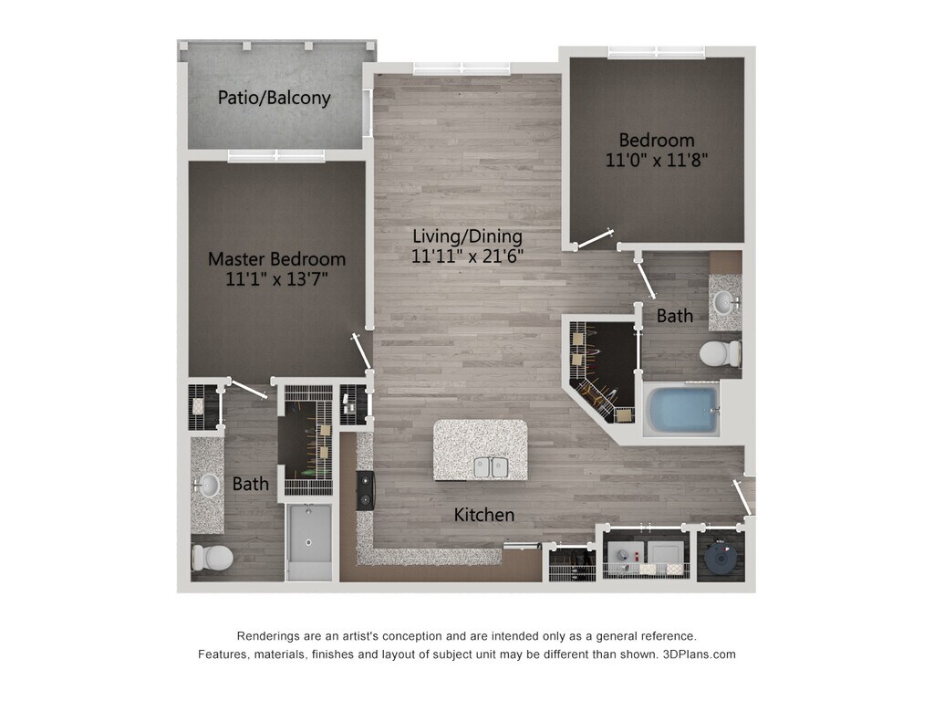 2 Dormitorios, 2 Baños, 1096 pies²Galería del Modelo