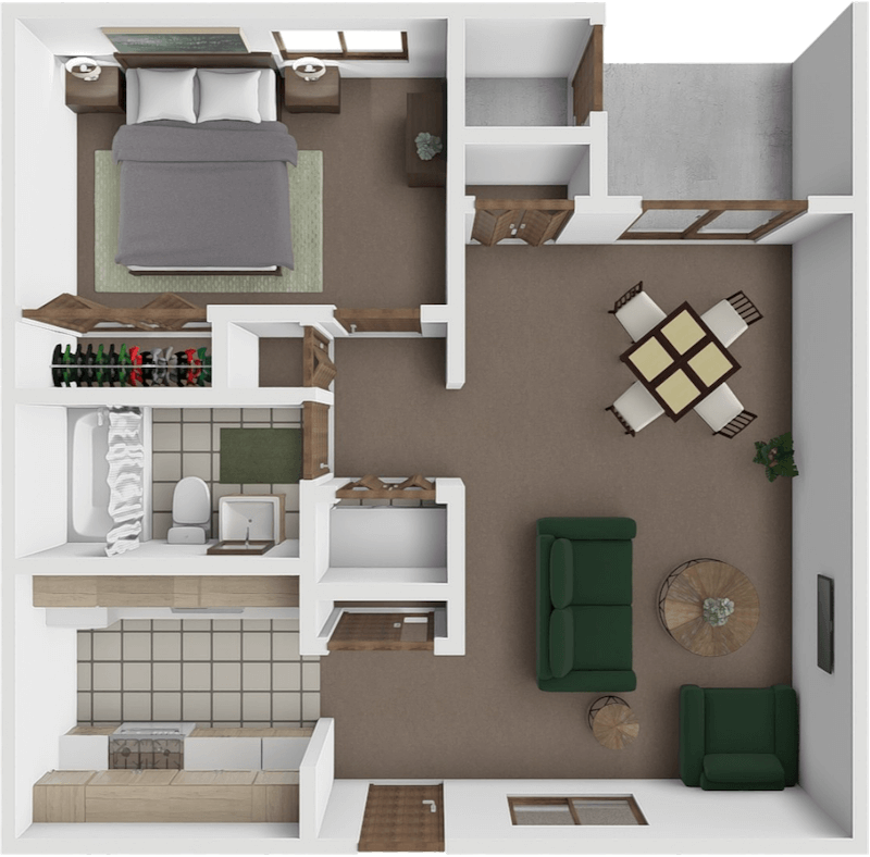 Modelo de apartamento: SycamoreDesde $7751 Dormitorio, 1 Baño, 520 sq ftDisponible AhoraLos planos son representaciones artísticas. Todas las dimensiones son aproximadas. El producto y las especificaciones reales pueden variar en tamaño o detalle. No todas las características están disponibles en cada vivienda en alquiler. Por favor, consulta con un representante para obtener más detalles.