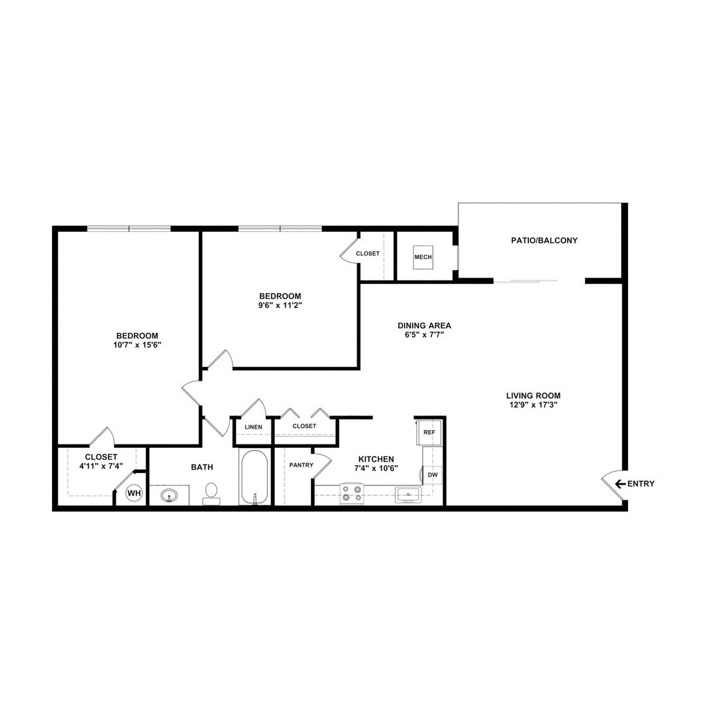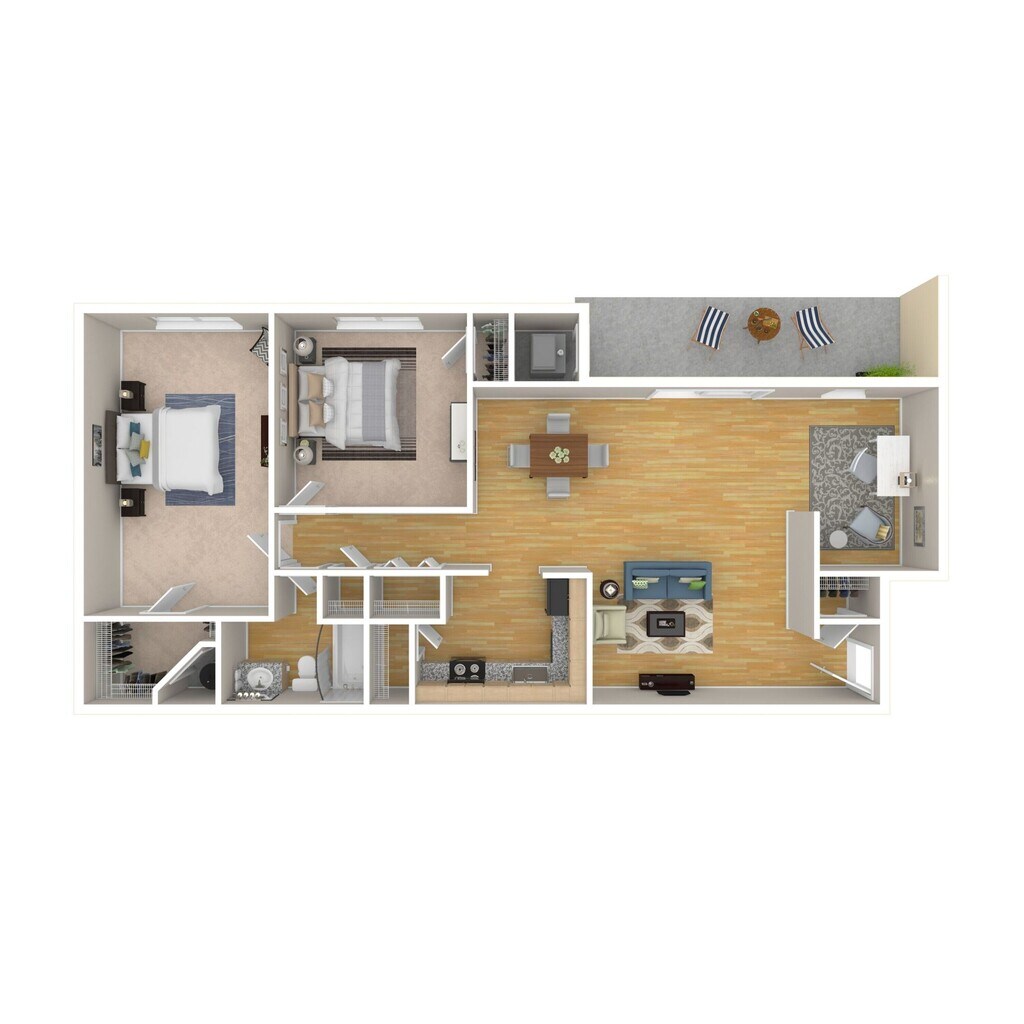 2 Dormitorios, 1 Baño, 940 pies²Disponible AhoraGalería del Modelo