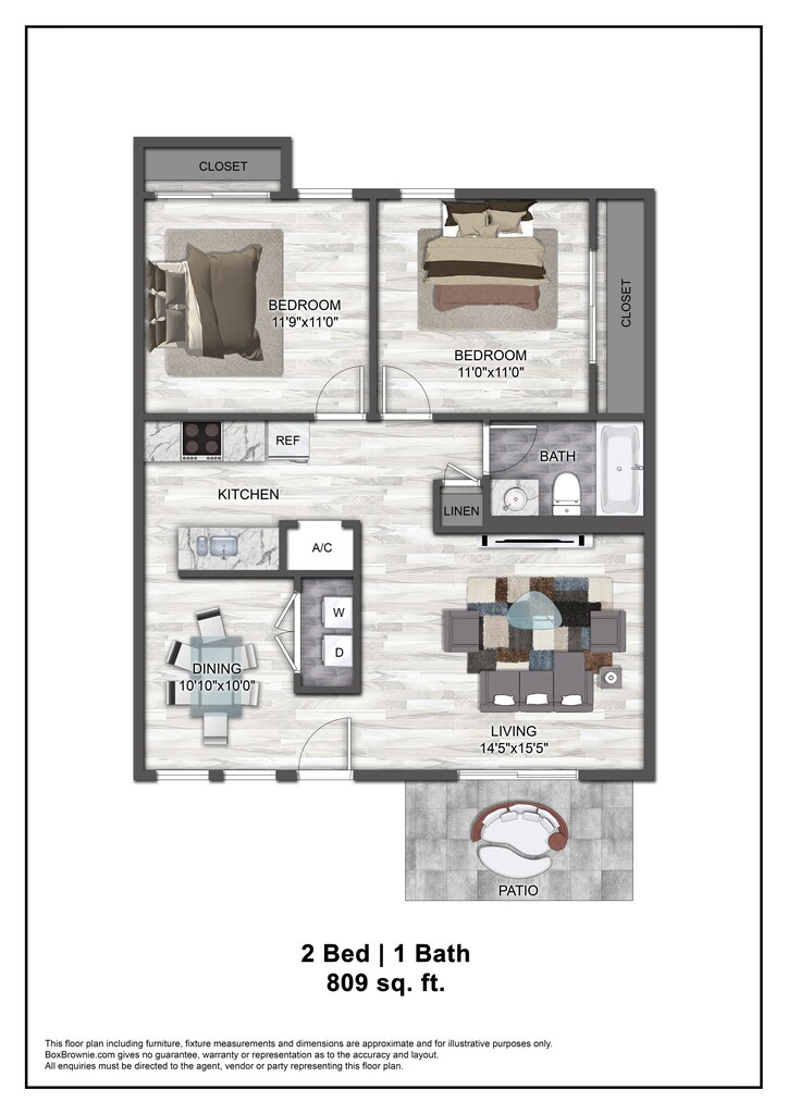 2 Dormitorios, 1 Baño, 809 pies²Disponible AhoraGalería del Modelo