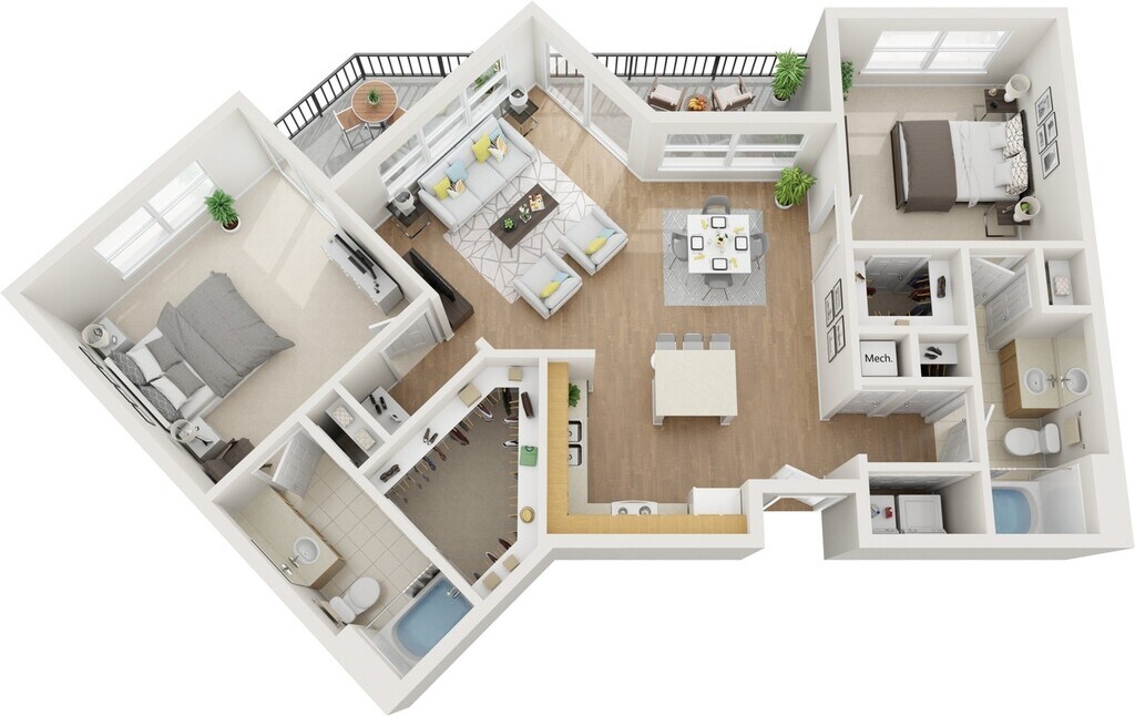 Modelo de apartamento: B20aL - Chesnut2 Dormitorios, 2 Baños, 1094 sq ftDisponible Ahora![]()