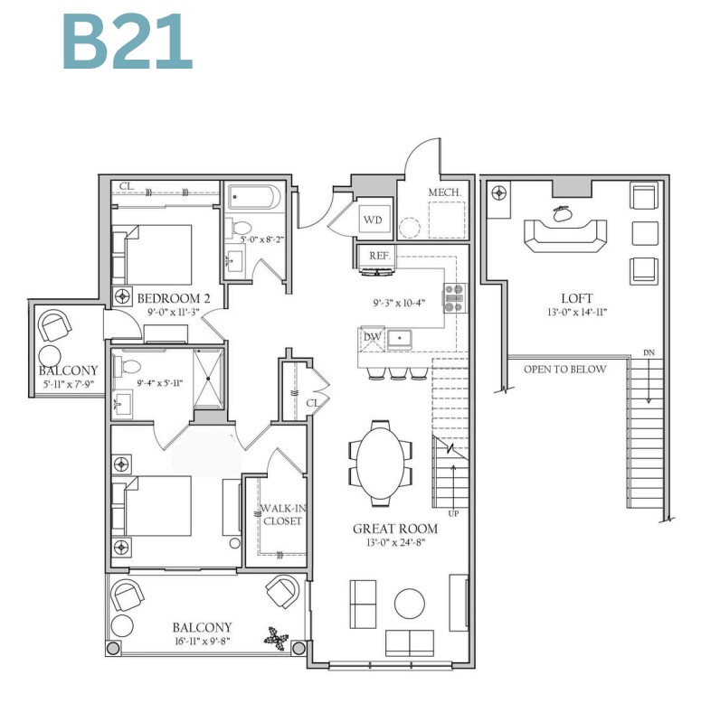 B4L - Plano 1 Unidad de apartamento: 2406Modelo de apartamento: B4L$4,1852 Dormitorios, 2 Baños, 1287 sq ftDisponible AhoraPlano: B21
