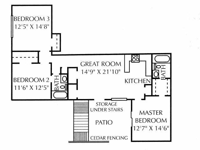 Modelo de apartamento: 3x2 1025 (Upstairs)$1,9103 Dormitorios, 2 Baños, 1025 sq ftDisponible December 19, 2025![]()