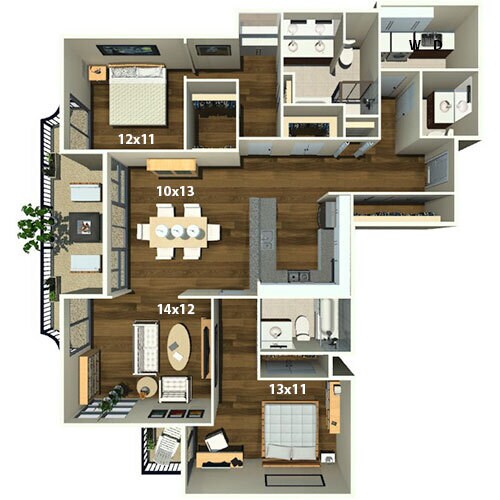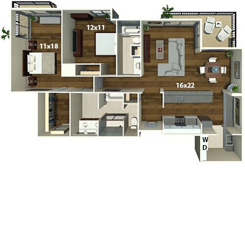 Modelo de apartamento: Sunset2 Dormitorios, 2 Baños, 1087 sq ftDisponible Ahora![]()