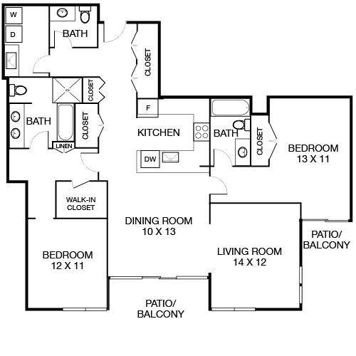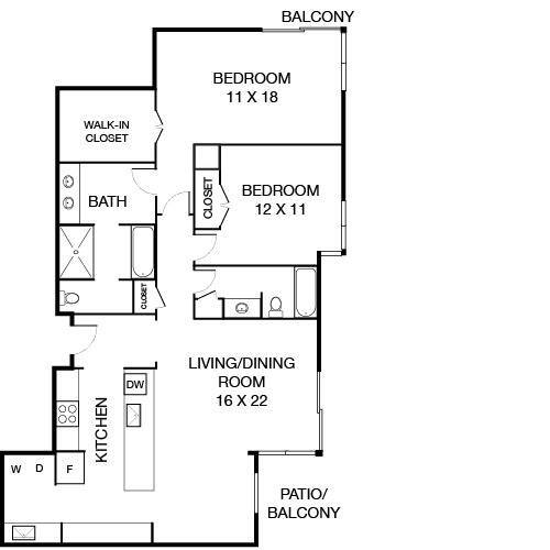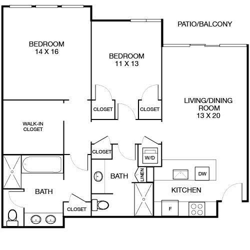 Coast - Plano 2 Unidad de apartamento: 311Modelo de apartamento: Coast1 Dormitorio, 1 Baño, 748 sq ftDisponible Ahora2 Dormitorios