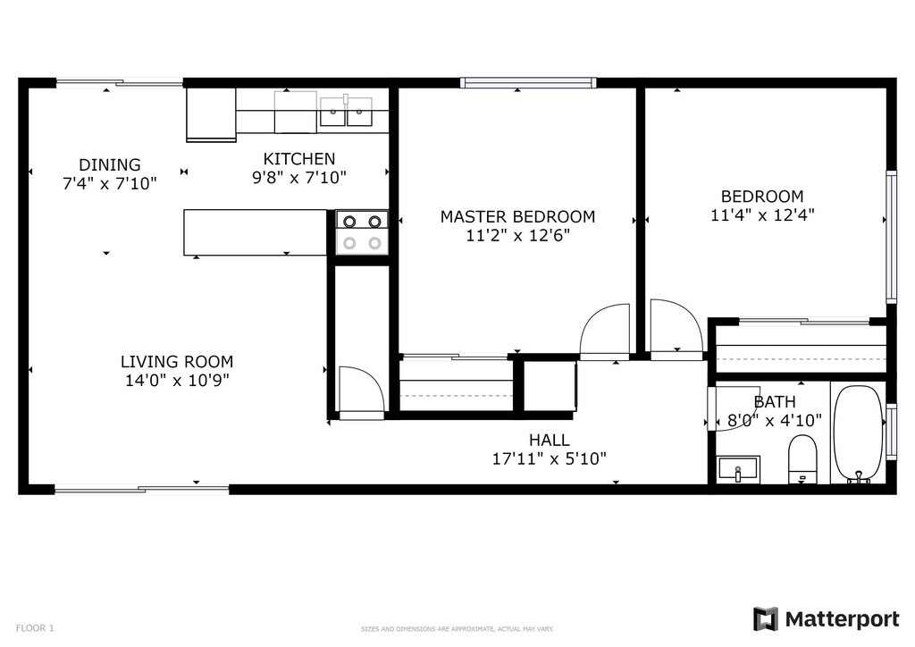 2 Dormitorios, 1 Baño, 800 pies²Galería del Modelo