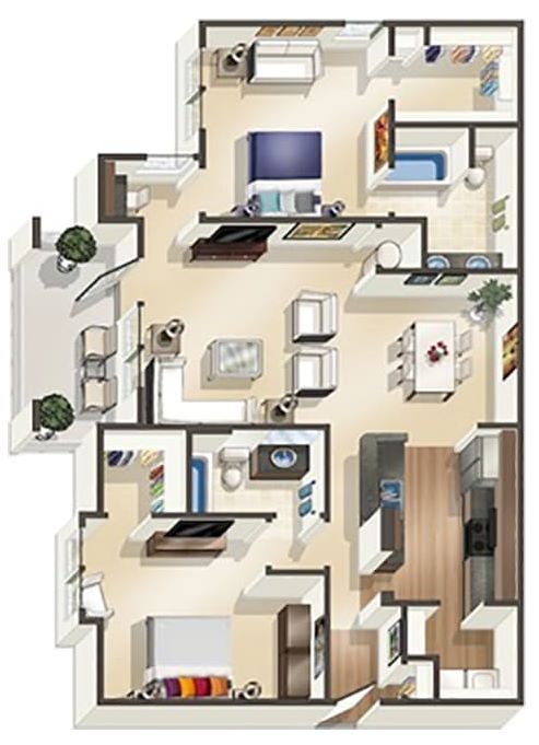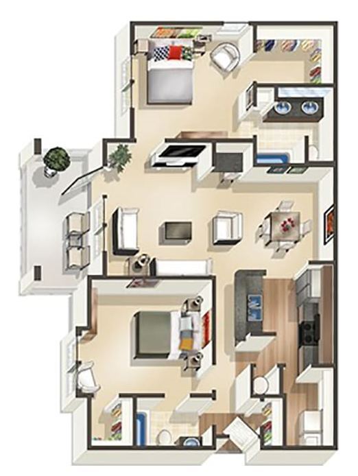 2 Dormitorios, 2 Baños, 1055 pies²Disponible AhoraGalería del Modelo