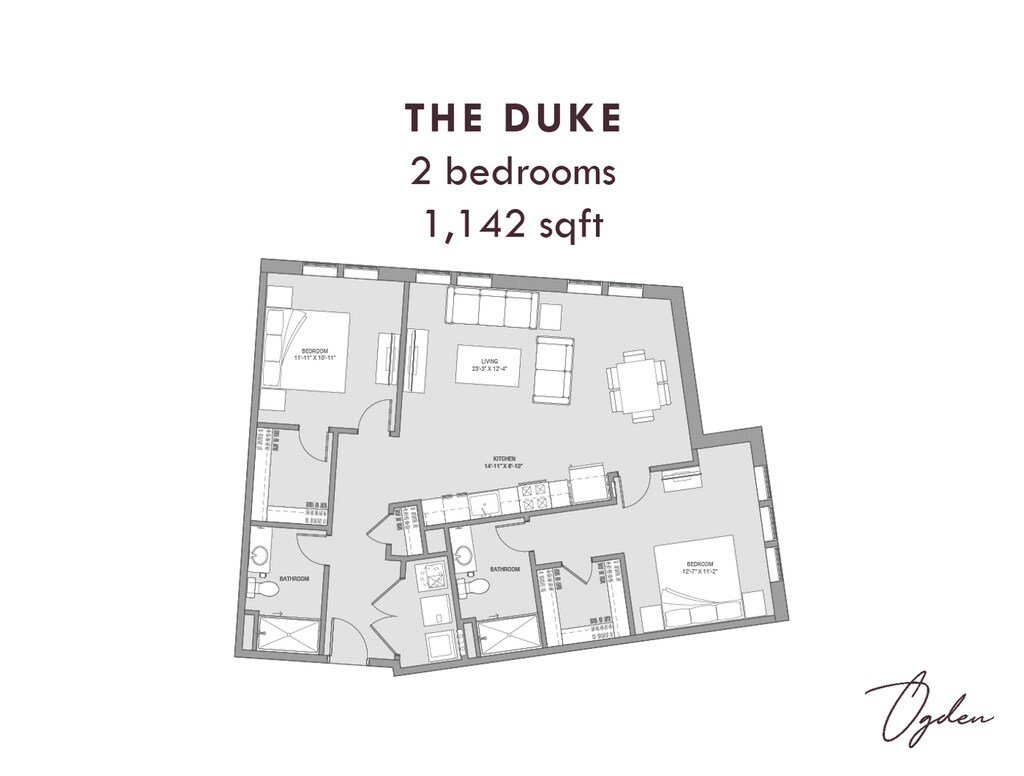 Modelo de apartamento: The Duke$1,5992 Dormitorios, 2 Baños, 1142 sq ftDisponible Ahora![]()